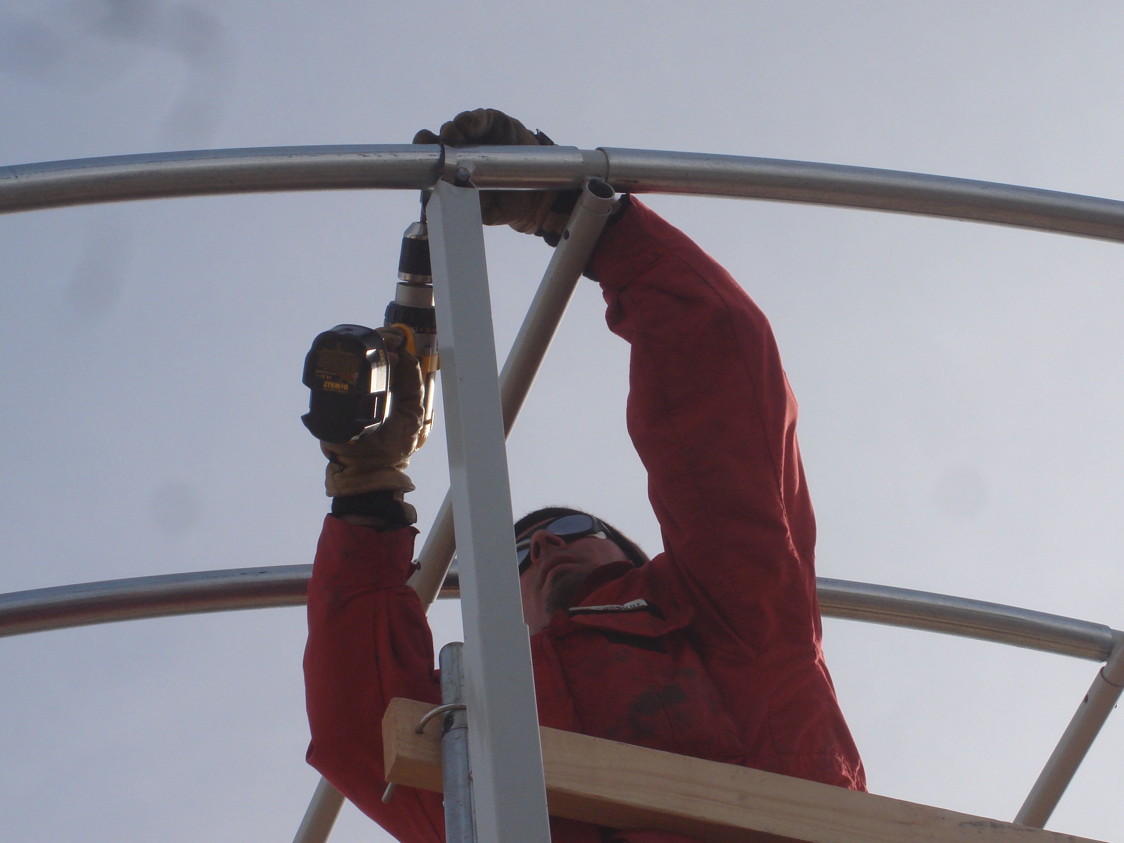 Maciej secures the joint on the tent frame. McMurdo Station, Antarctica.