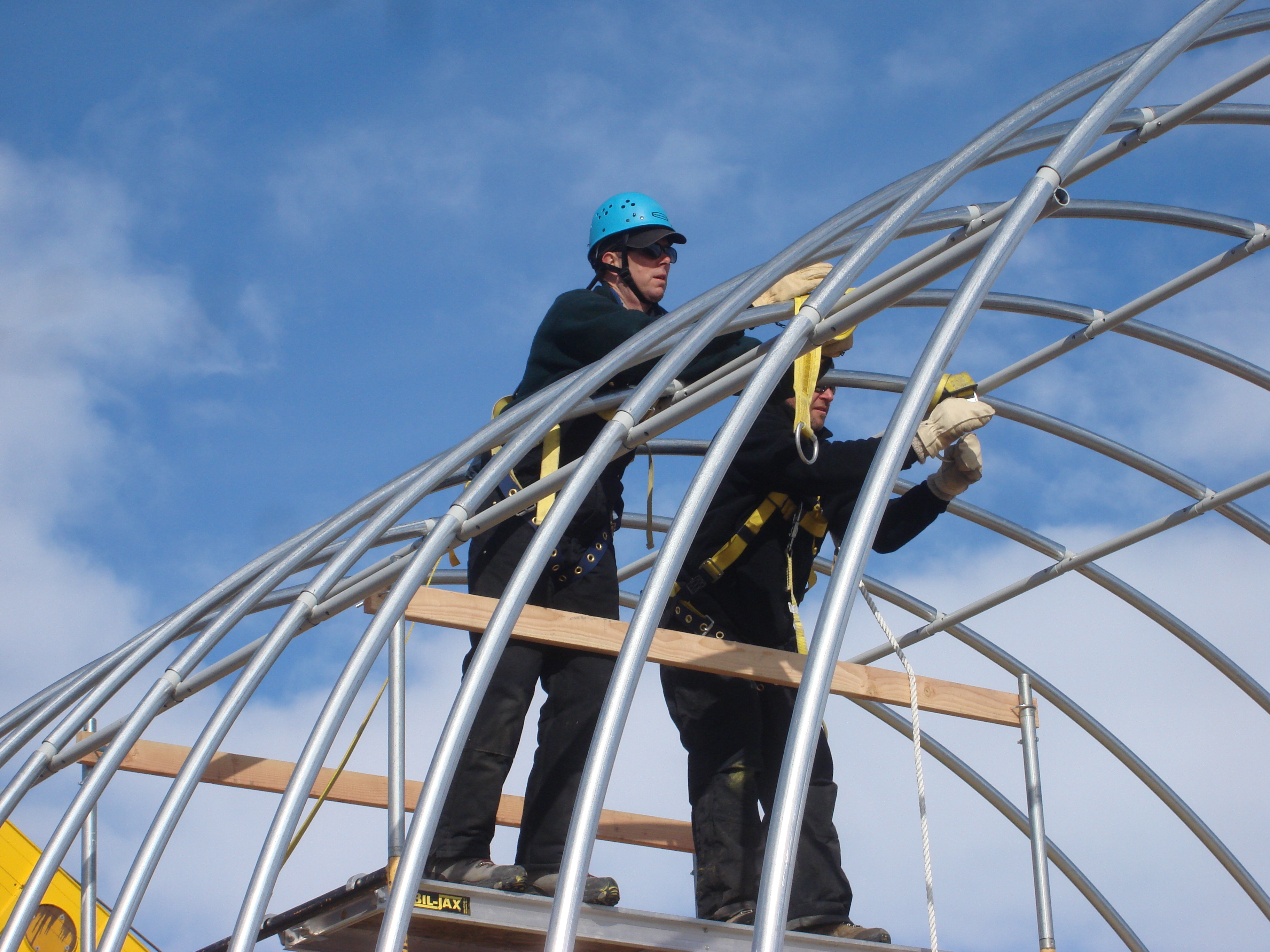 Peter Doran works on taking apart the tent frames. McMurdo Station, Antarctica.