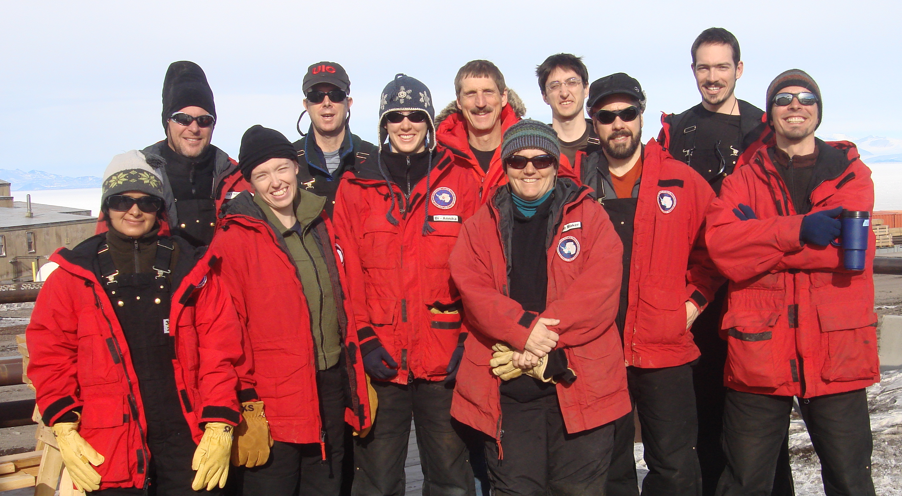 The ENDURANCE team (Environmentally Non-Disturbing Under-ice Robotic ANtarctiC Explorer) posing for a group photo. McMurdo Station, Antarctica.