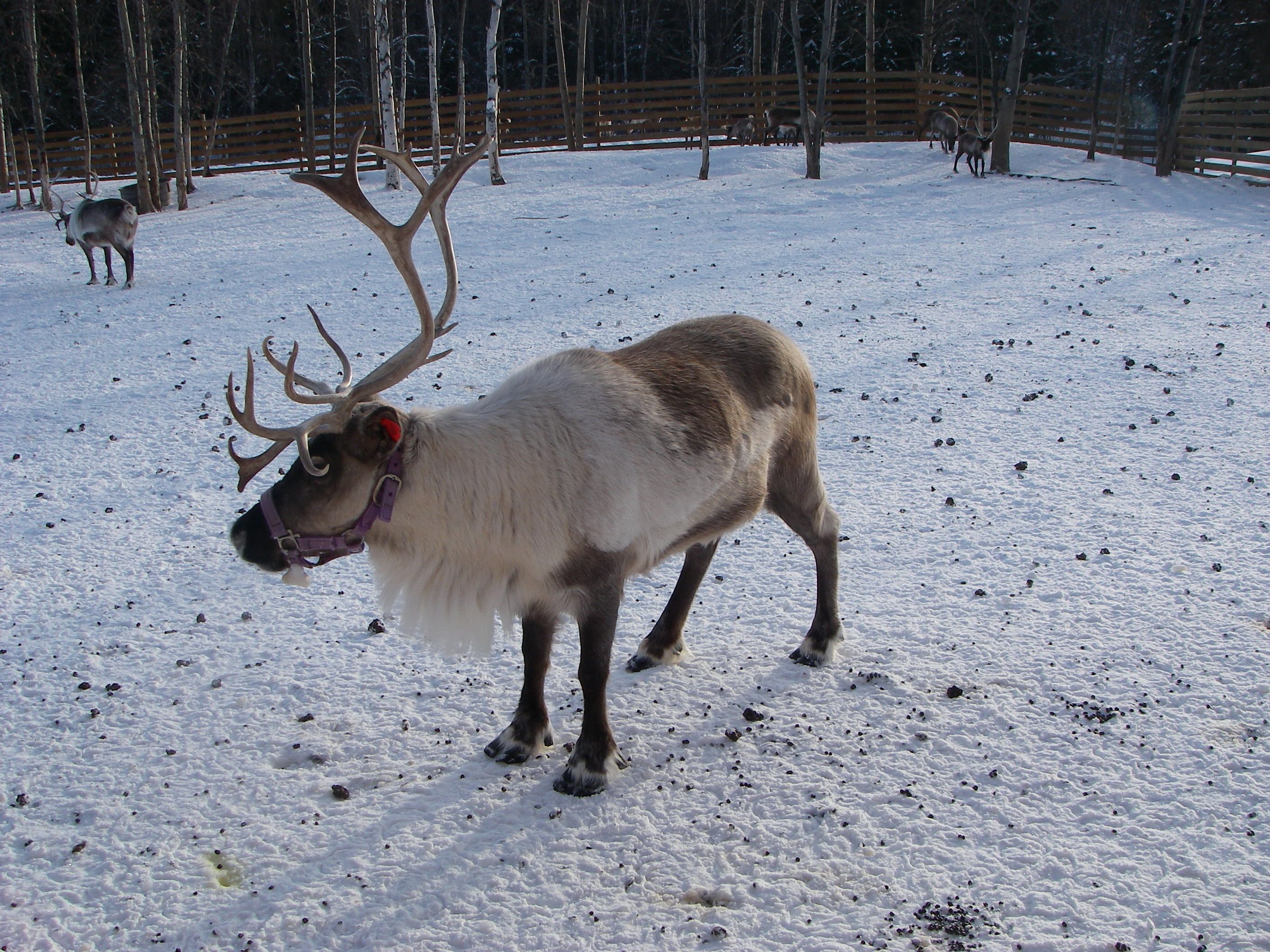 Reindeer at the Robert G. White Large Animal Research Station took advantage of a chance to show off just how they look different from caribou. Fairbanks, Alaska.