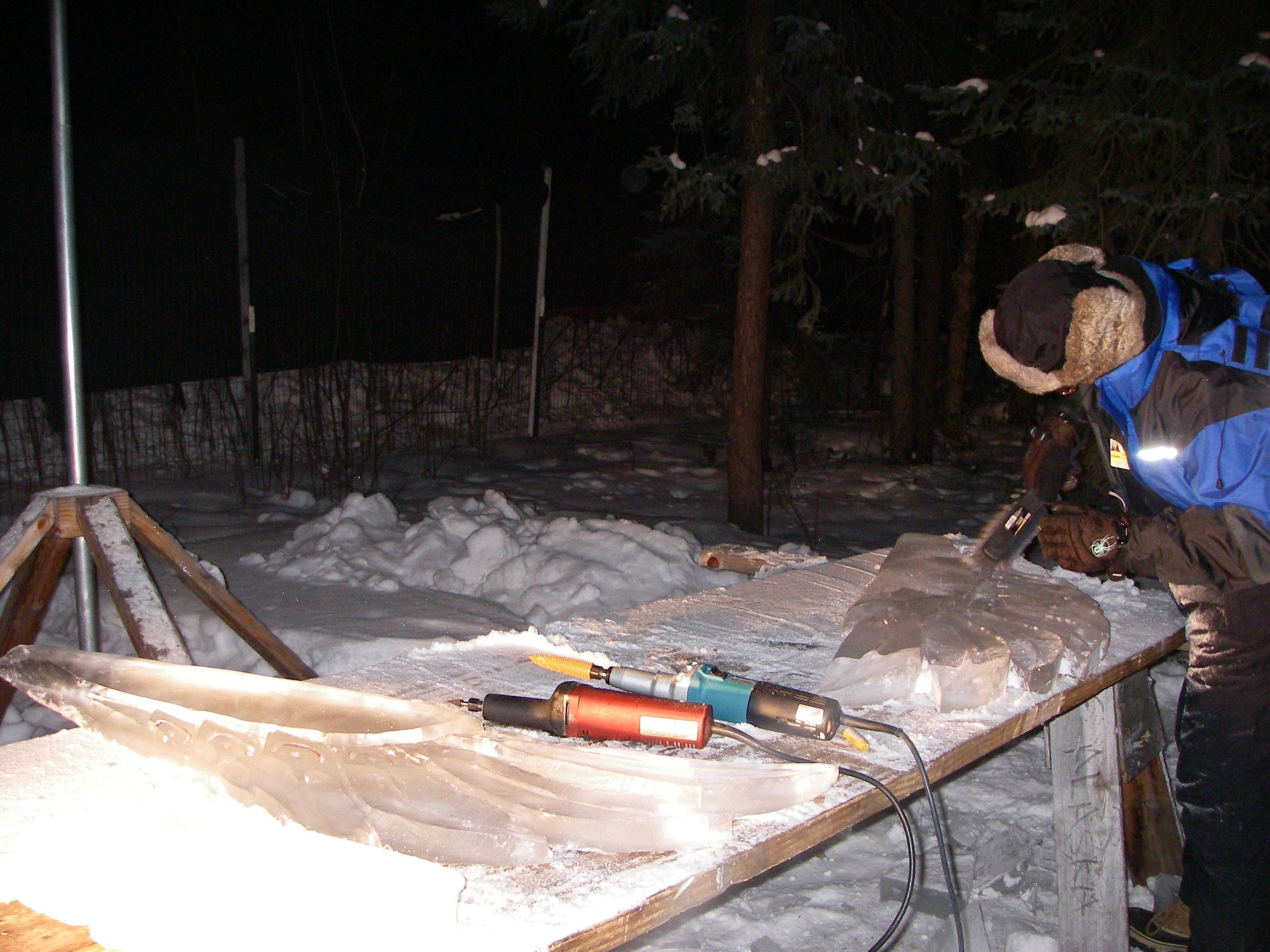 Ice carvers use a variety of gas and electric tools to work their magic. They range from rasps and drills to chain saws specially set up for carving ice. At the World Ice Art Championships in Fairbanks, Alaska.