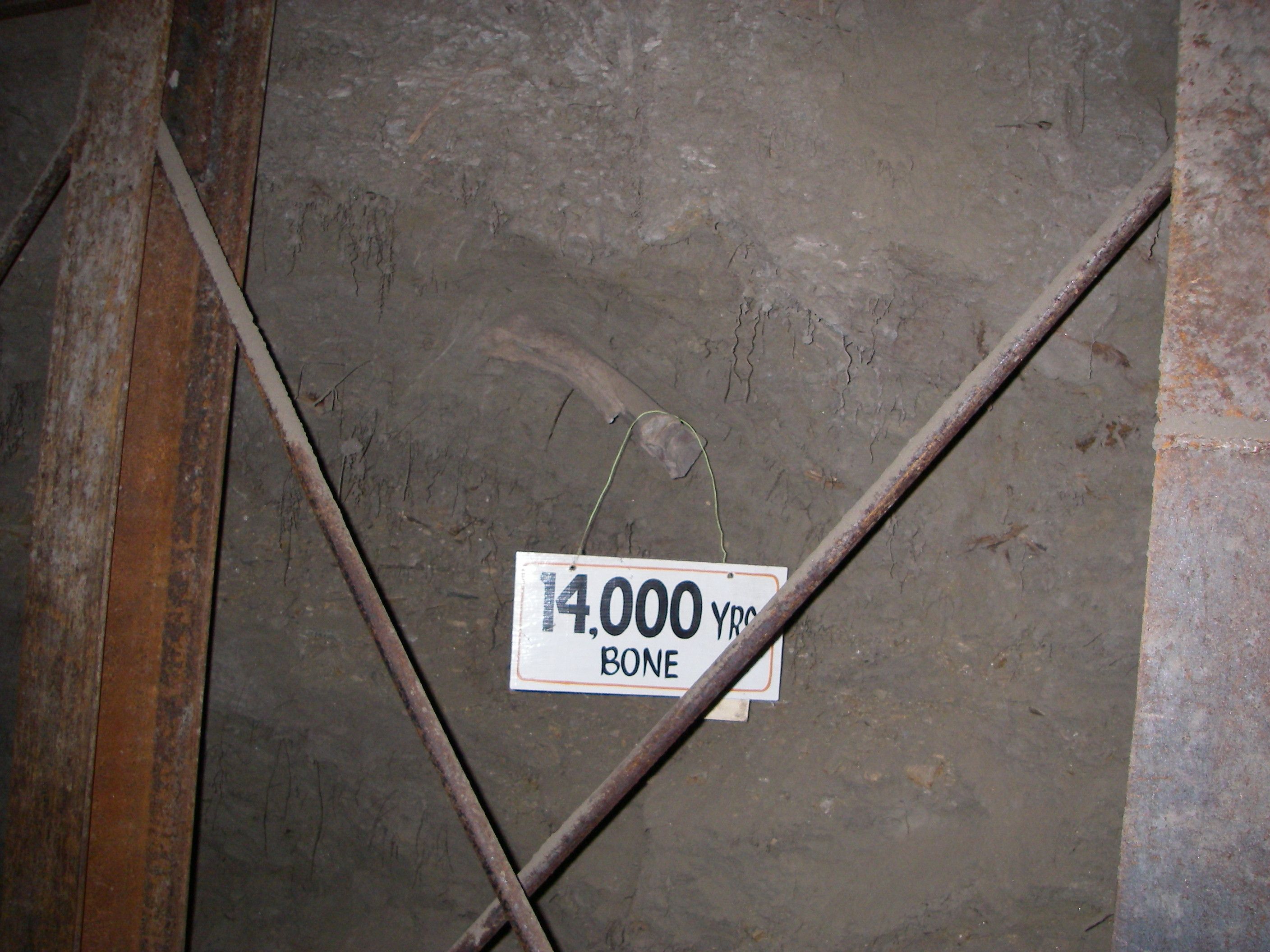 A perfect example of the bones preserved throughout the walls of the Permafrost Research Tunnel in Fox, Alaska.