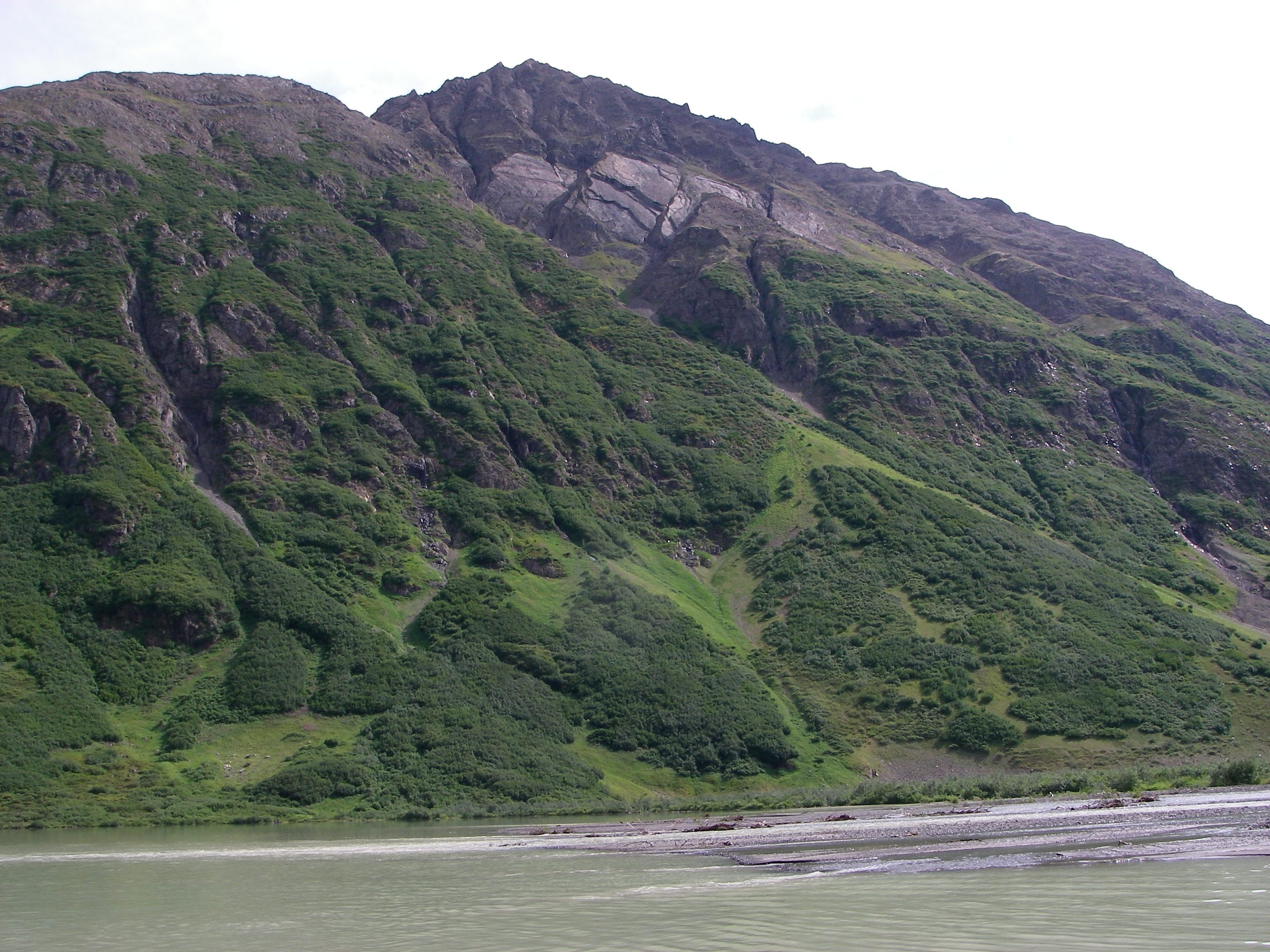 The ruggedly eroded mountainsides around Cascade Lake provided many opportunities for Barney Peterson to learn about the forces that formed this area. Heidi and Darrell were always willing to answer Barney's questions and help her learn. Cascade Lake, Alaska.