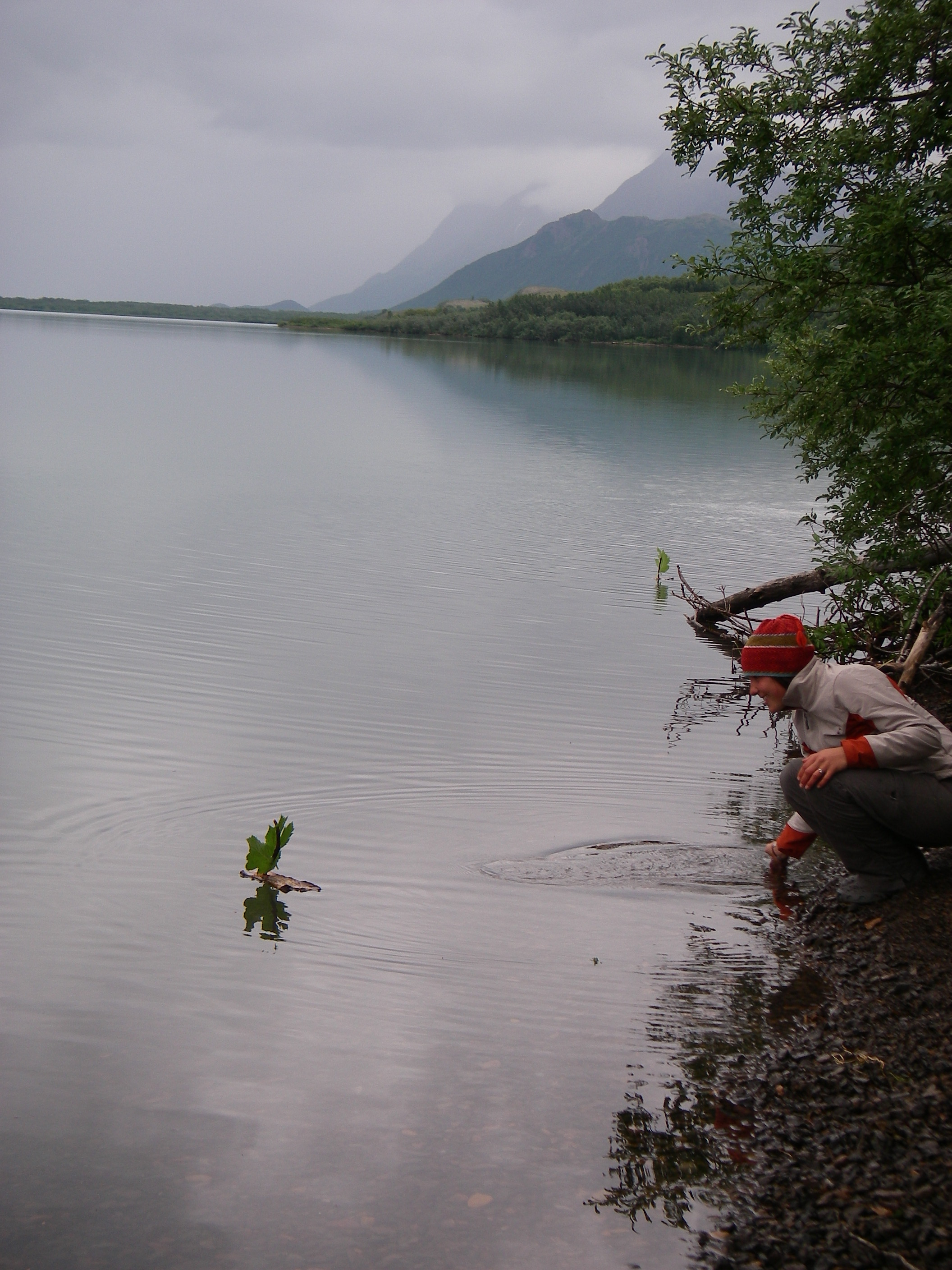 Heidi Roop launches yet another boat in the flotilla she created as a way to pass the time waiting to be airlifted. Upper Togiak Lake, Alaska.
