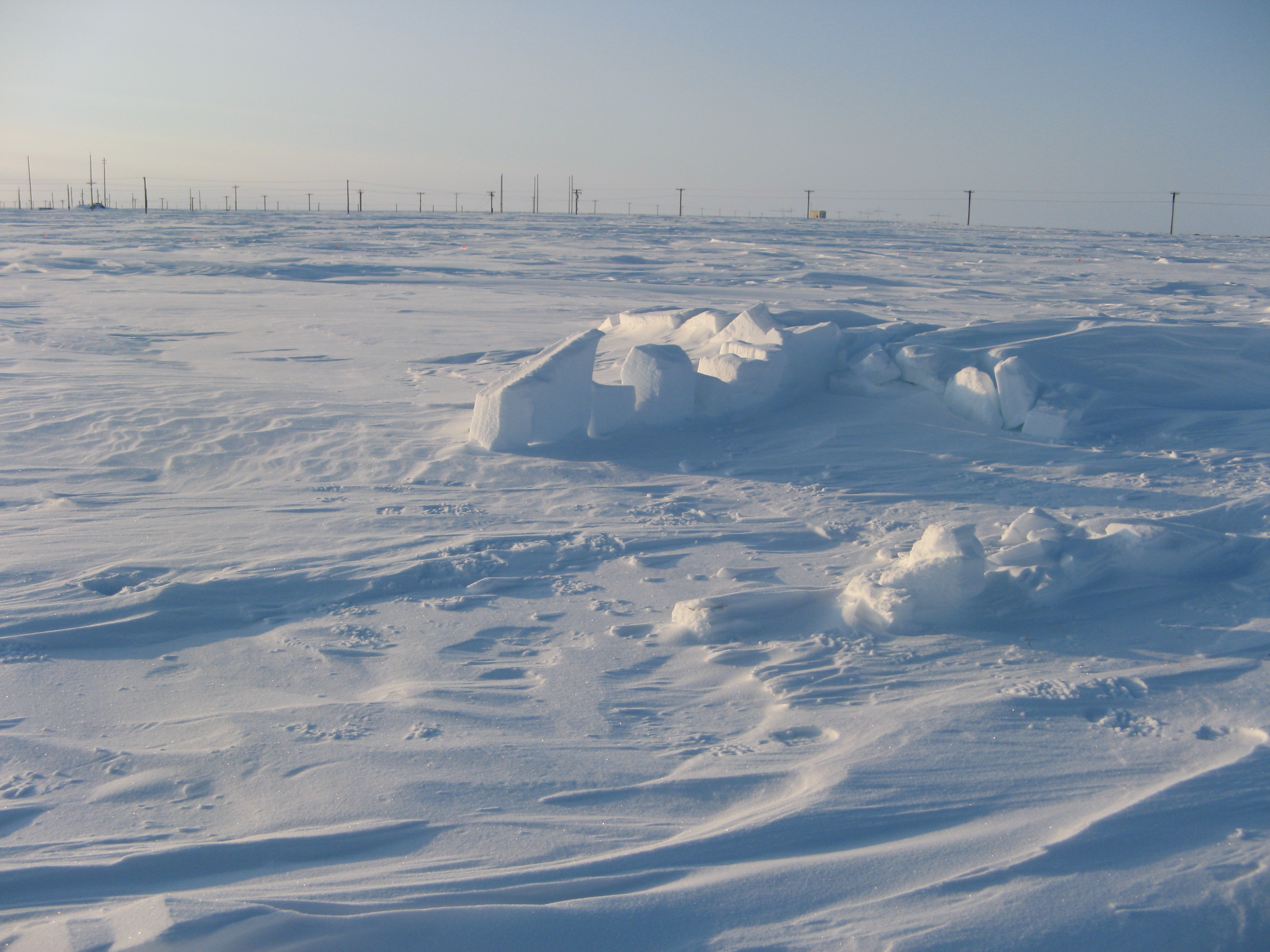 Snow blocks are used to create a snowdrift downwind. At the Barrow Arctic Research Center (BARC) in Barrow, Alaska.