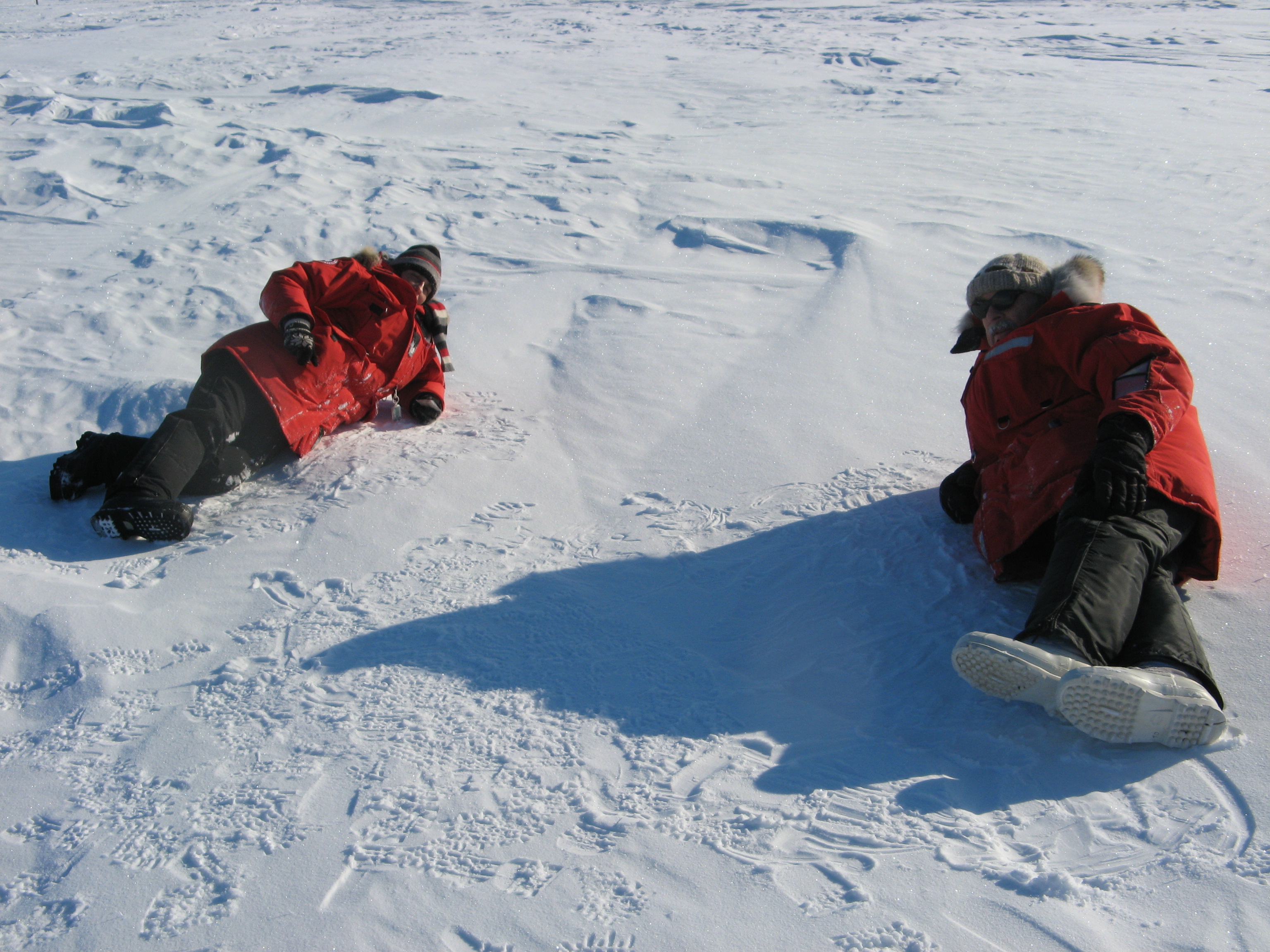 Stoyka Netcheva (left) and Jan Bottenheim (right) take a break on a sunny -30°C day. At the Barrow Arctic Research Center (BARC) in Barrow, Alaska.