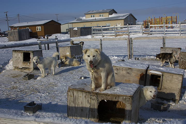 Sled dogs in their kennel. Barrow, Alaska.
