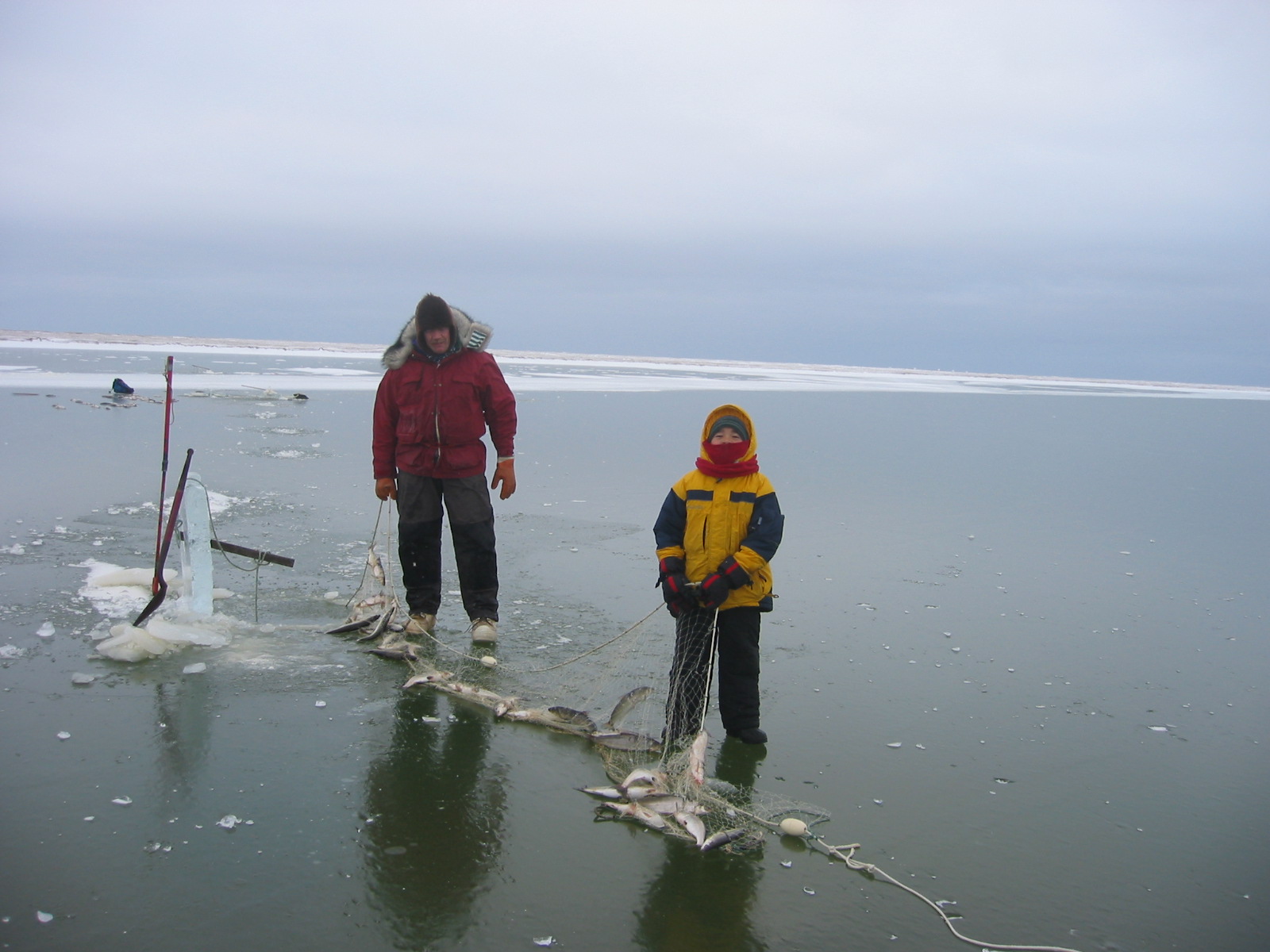 Geoff Carroll and his son catch fish for their sled dogs. Barrow, Alaska.