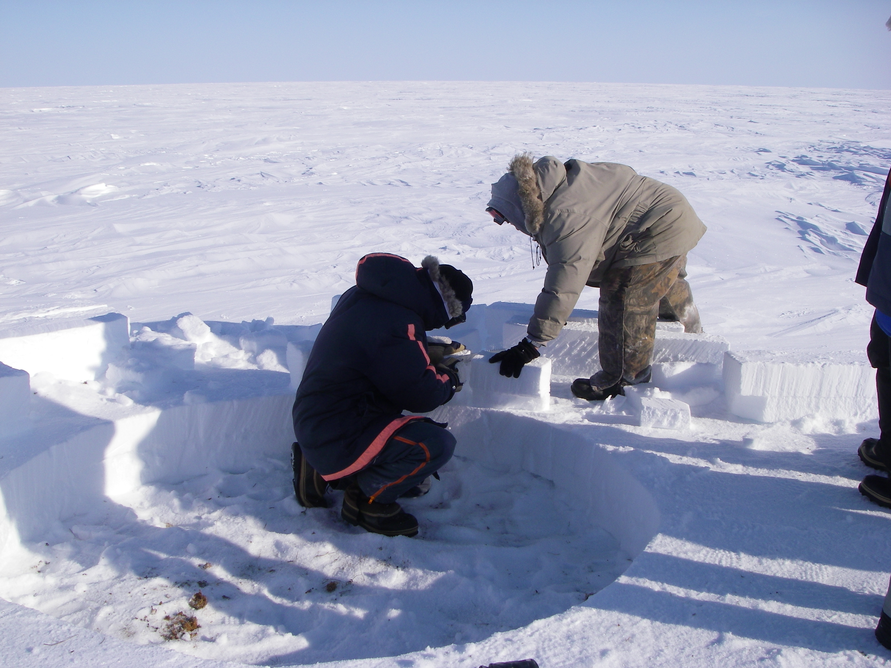 Holgar Sihler and Roy build an igloo while working out on the frozen tundra eight miles from the Barrow Arctic Research Center (BARC) in Barrow, Alaska.