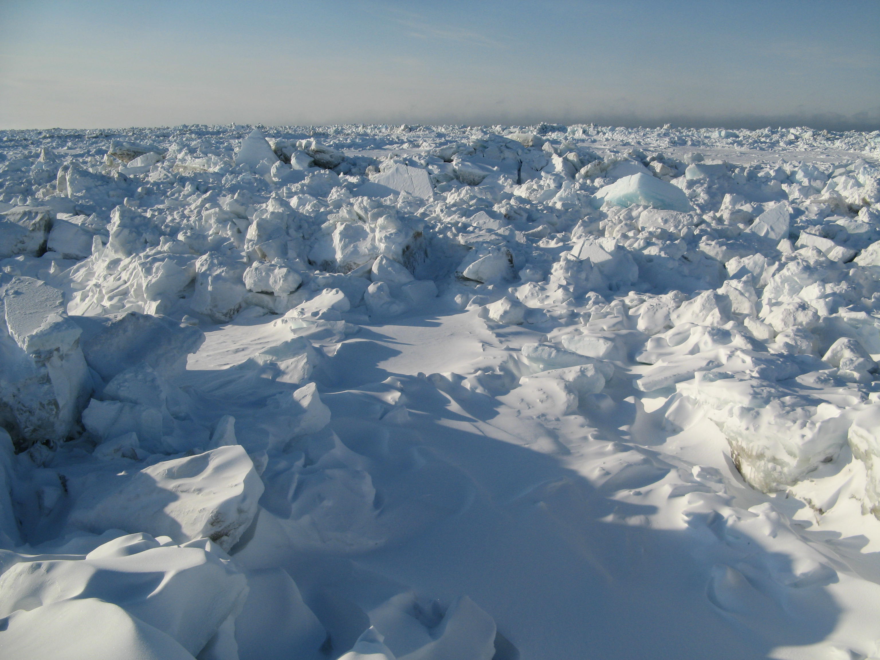 Land-fast sea ice is fastened along the shoreline in Barrow, Alaska.