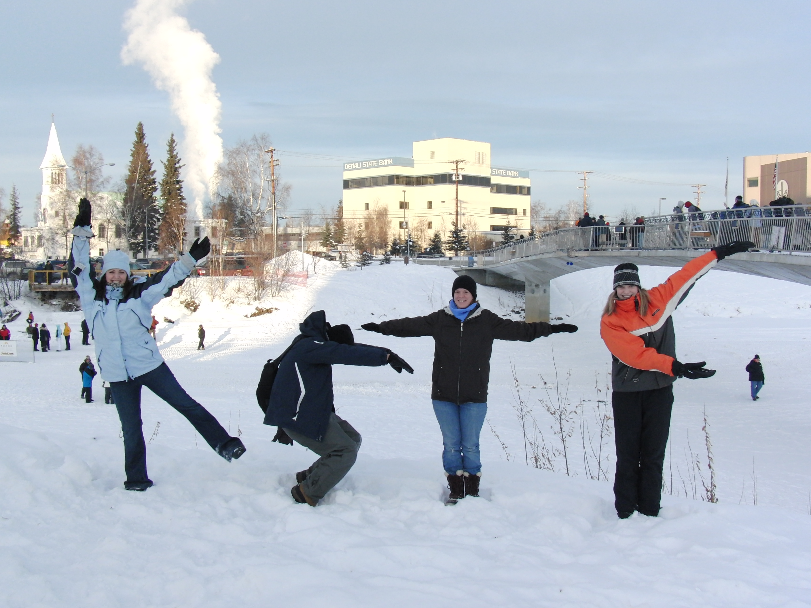 The IceCube/KSTF team representing: Kristen Fancher, Casey O'Hara, Liz Ratliff, Katey Shirey. Fairbanks, Alaska.