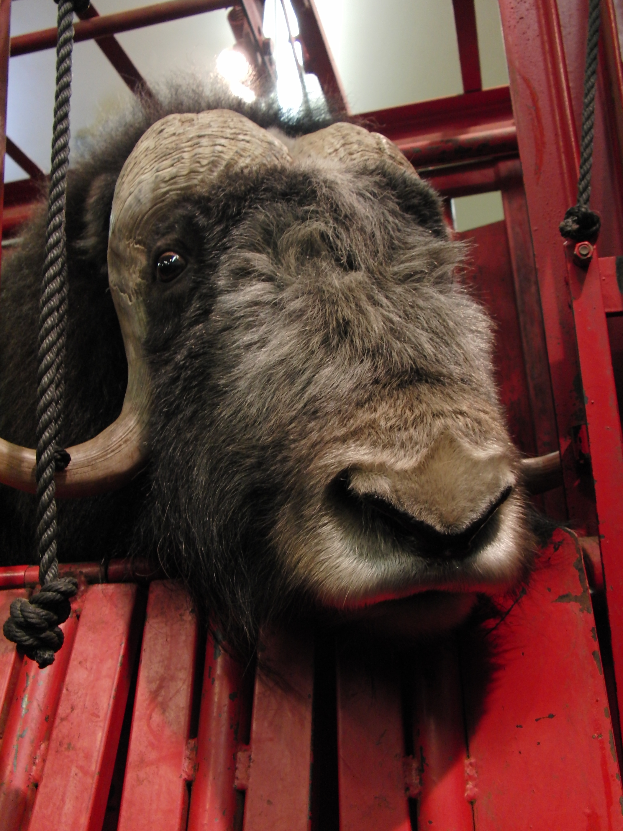 Casey O'Hara: "This muskox was brought indoors so we could investigate his layers of fur. Under the long coarse protective hair, muskox have a layer of soft downy hair that keeps them really warm." At the Robert G. White Large Animal Research Station at the University of Alaska Fairbanks.