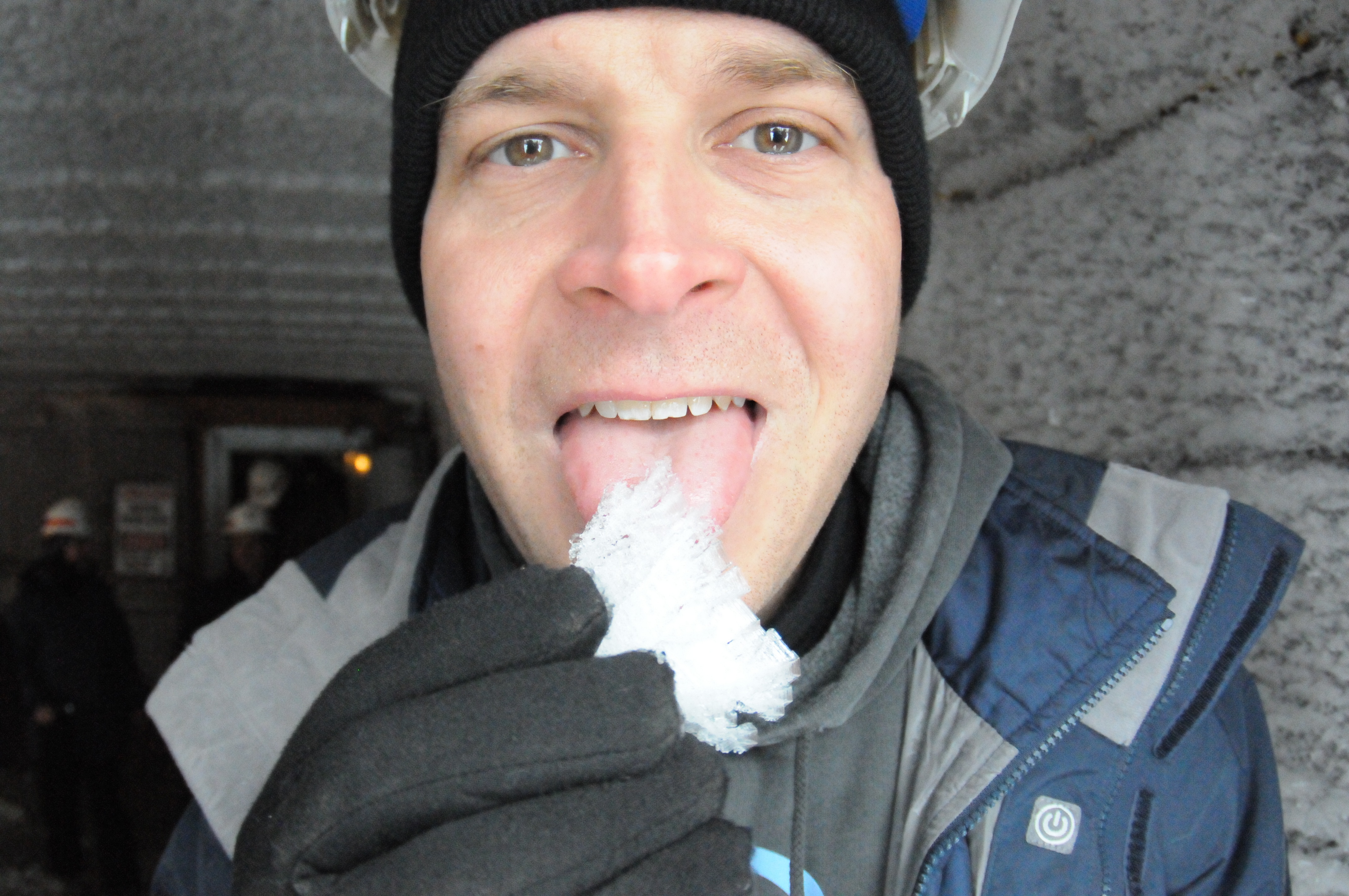 Casey O'Hara: "Actually, the ice crystals had only frozen recently, but the water that it is made of came from moisture in the permafrost, trapped underground for up to 40,000 years!" At the Permafrost Tunnel in Fox, Alaska.