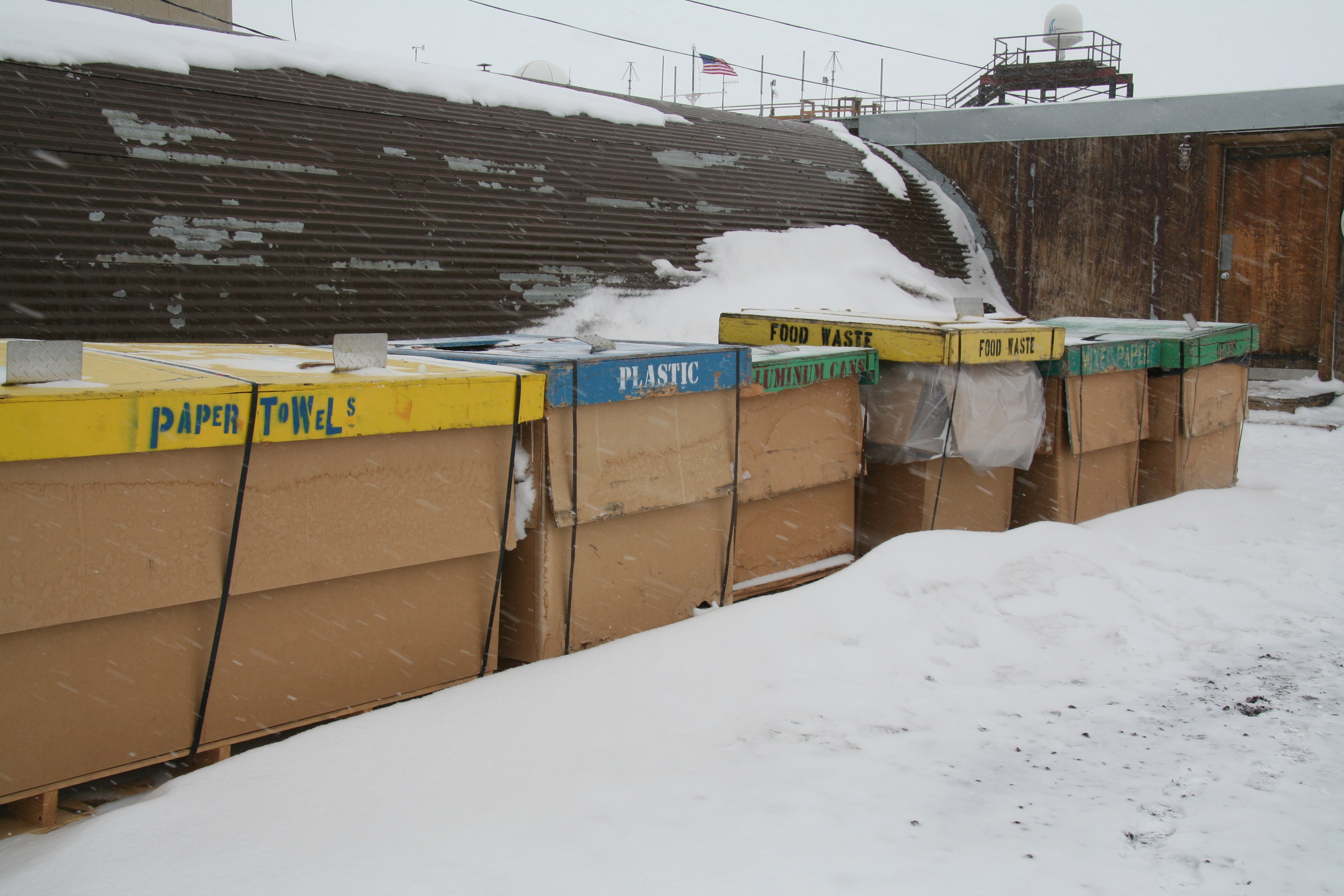 Because all of the waste must be transported off the continent, recycling is taken very seriously in Antarctica. McMurdo Station, Antarctica.