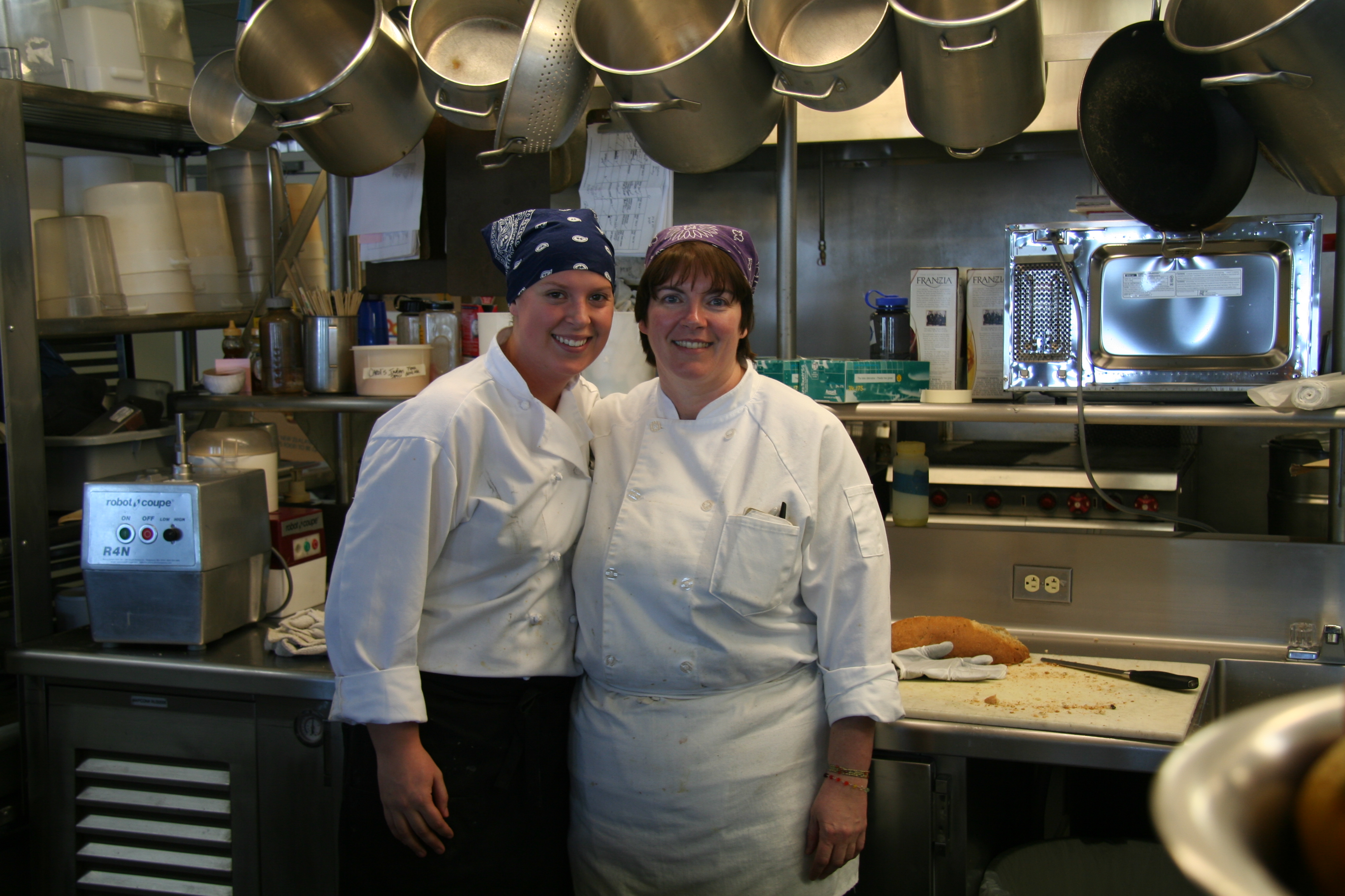Casey O'Hara: "In the kitchen, Bethany and Carol put together some great food under very challenging circumstances." In the kitchen at the Amundsen-Scott South Pole Station, Antarctica.