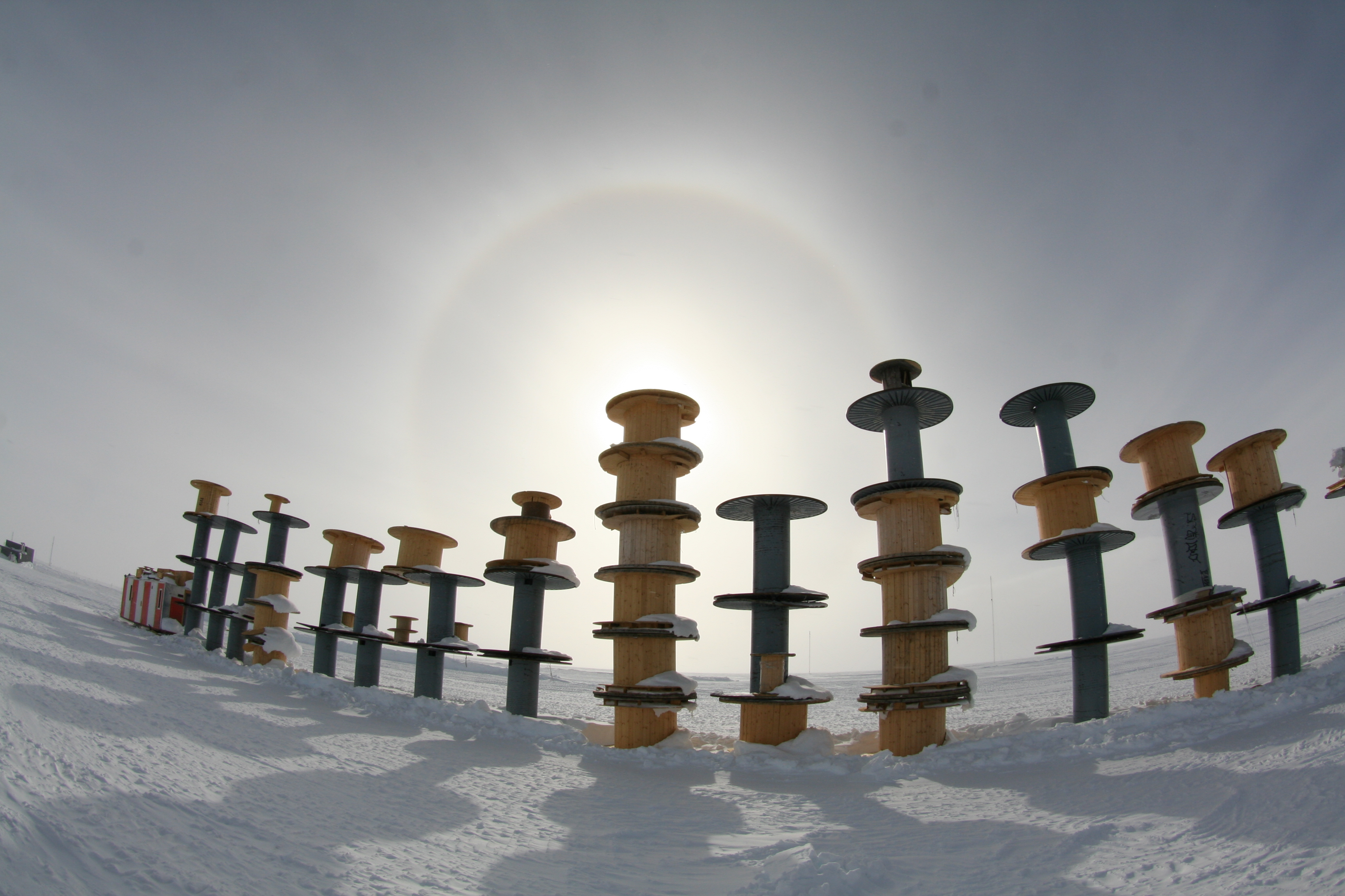Casey O'Hara: "Halos and other atmospheric effects show up best when you have something to block the direct sunlight, especially if it's something weird and cool like Spoolhenge!" Near the Amundsen-Scott South Pole Station, Antarctica.