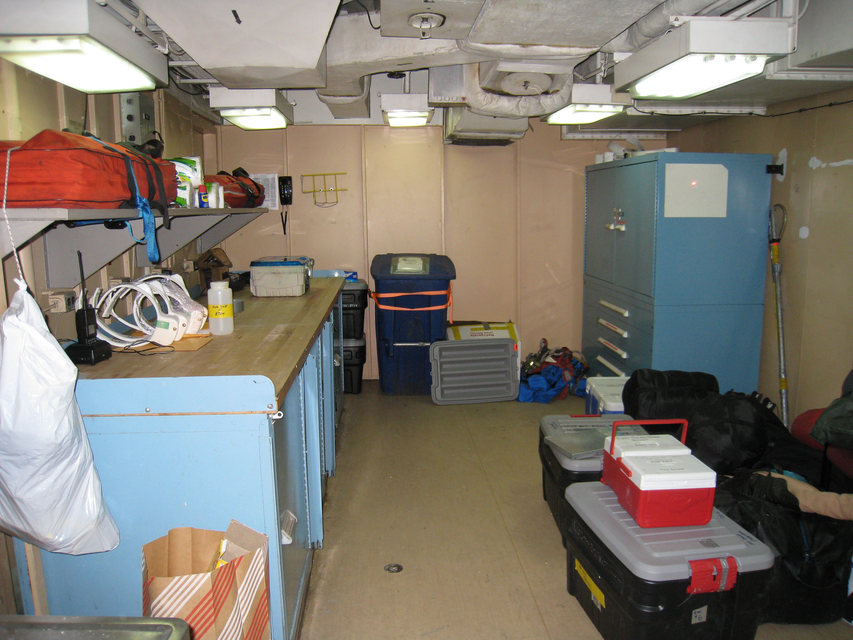 The aviation room is next to the hanger. This is the staging area for all of the gear that the team needs to take out on the sea ice. Aboard the USCGC Polar Sea icebreaker in the Beaufort Sea.