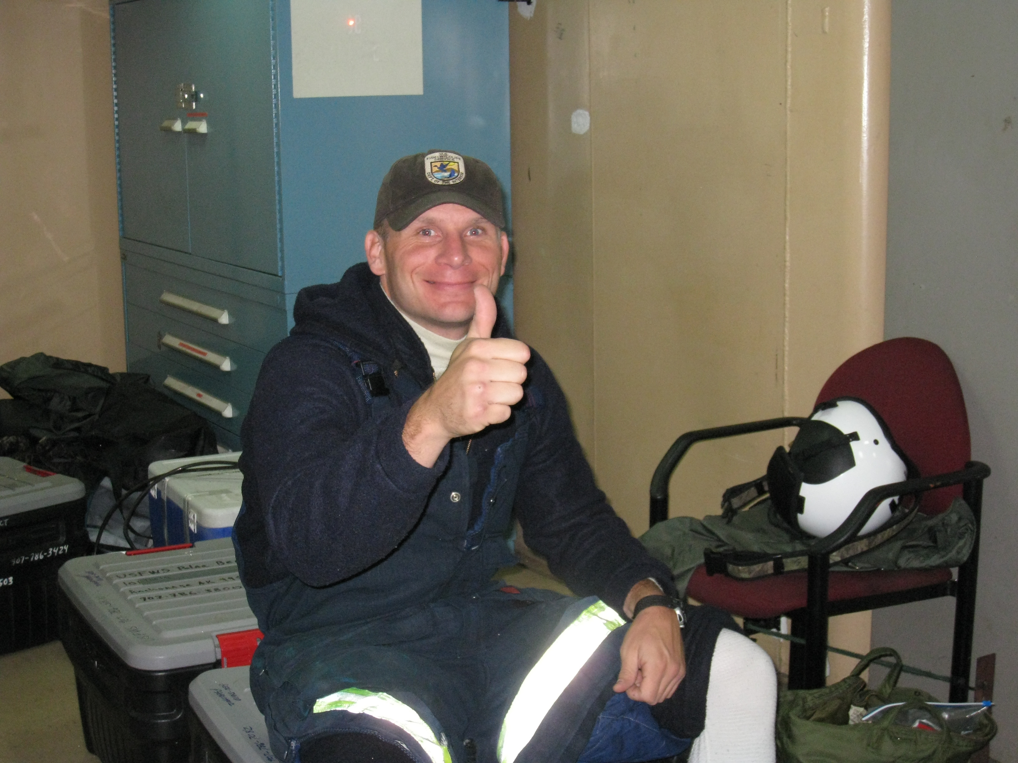 Eric Regehr gets ready to head out on the helicopter for the first polar bear capture. Aboard the USCGC Polar Sea icebreaker in the Beaufort Sea.
