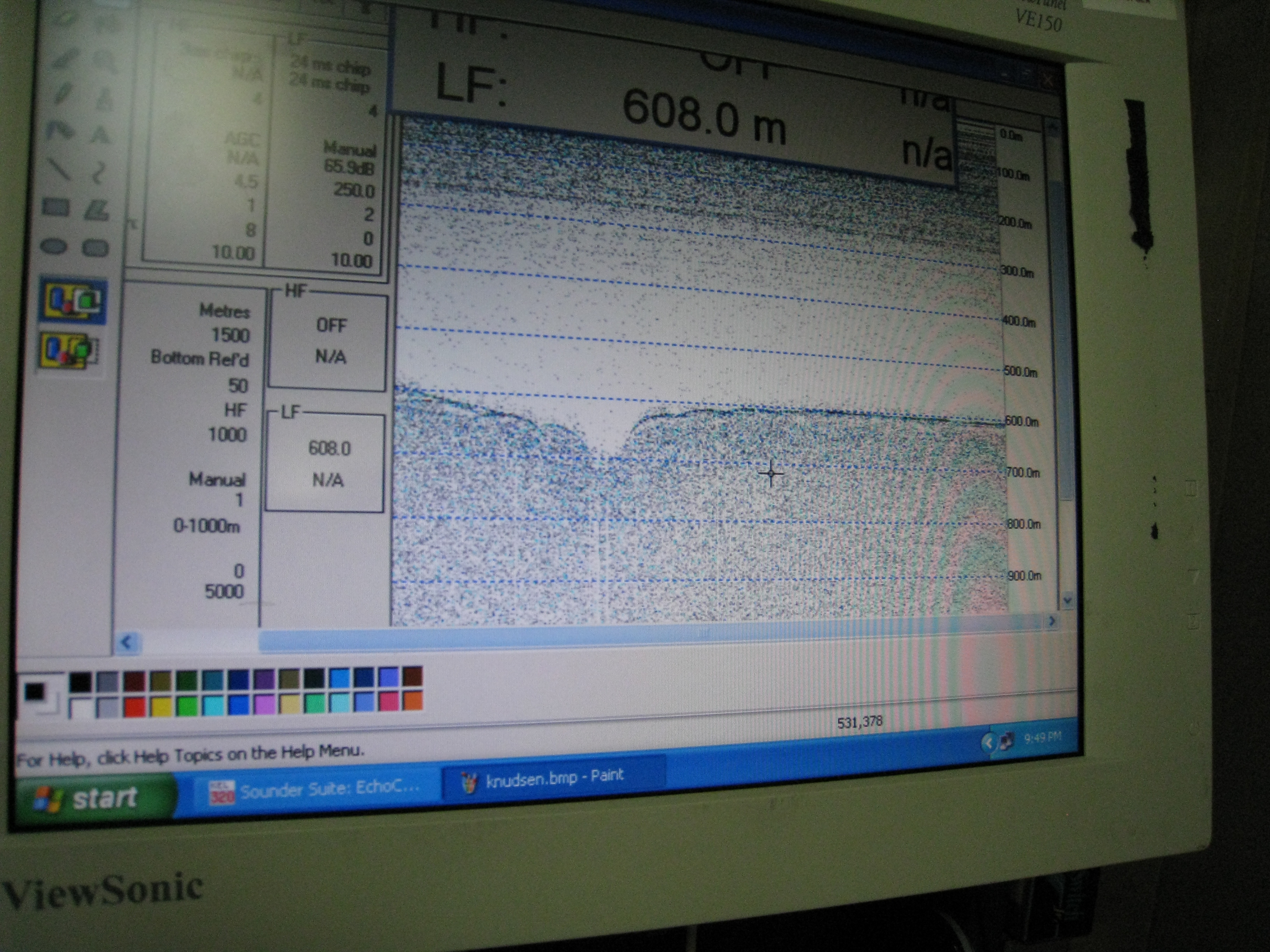 An image that the echosounder creates based on the data it receives. Aboard the USCGC Polar Sea icebreaker in the Beaufort Sea.