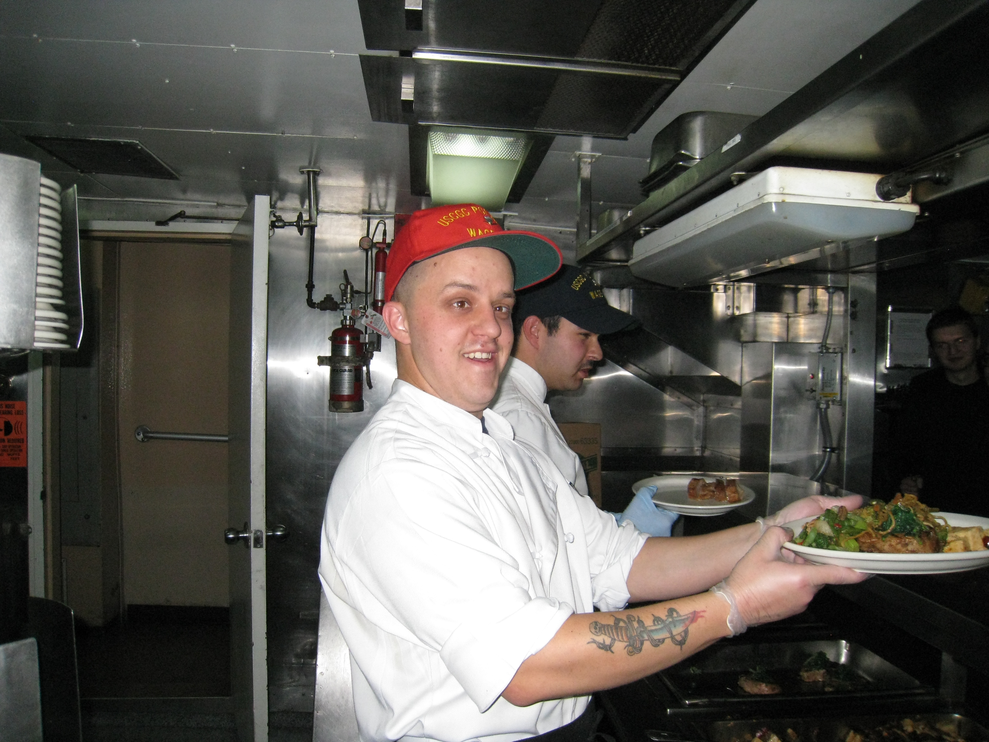 Cristina Galvan: "The food service team always serves a smile along with the meals." Aboard the USCGC Polar Sea icebreaker in the Beaufort Sea.