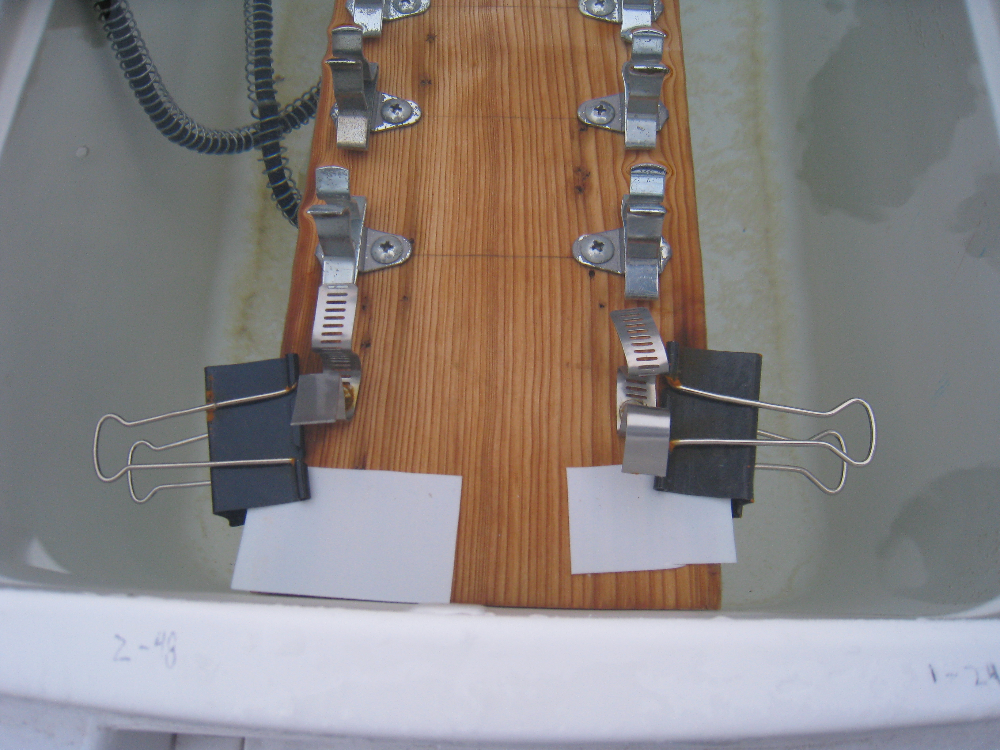 The white pieces of plastic are able to measure the amount of UV radiation that the tubes have been exposed to. These will be analyzed back in the lab when they return home. Aboard the USCGC Polar Sea icebreaker in the Beaufort Sea.