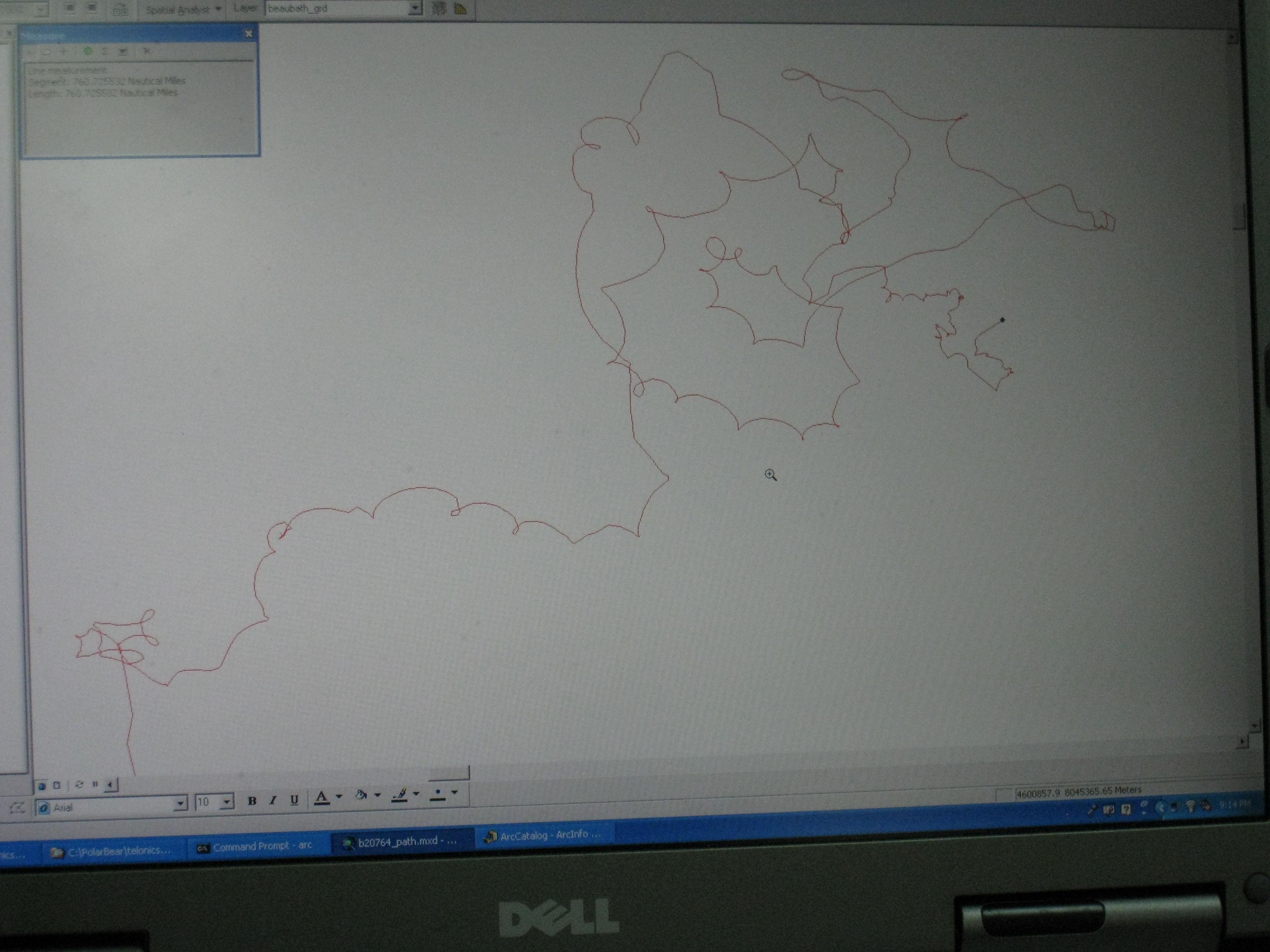 The red line shows the path of the polar bear that the team recaptured a few days prior. Aboard the USCGC Polar Sea icebreaker in the Beaufort Sea.