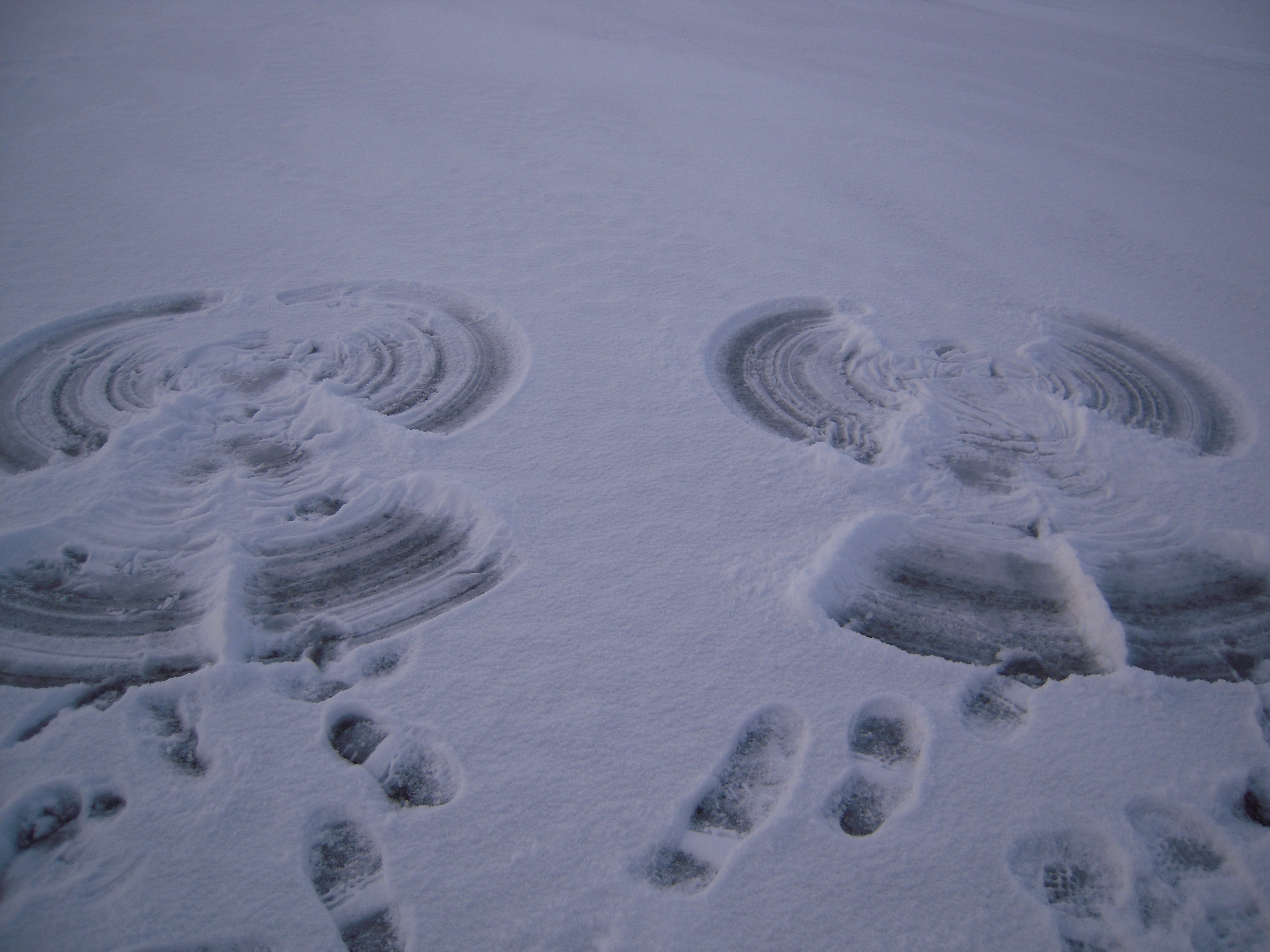 Cristina Galvan: "Snow angels on a beautiful afternoon on the sea ice." On the sea ice, near the USCGC Polar Sea icebreaker in the Beaufort Sea.