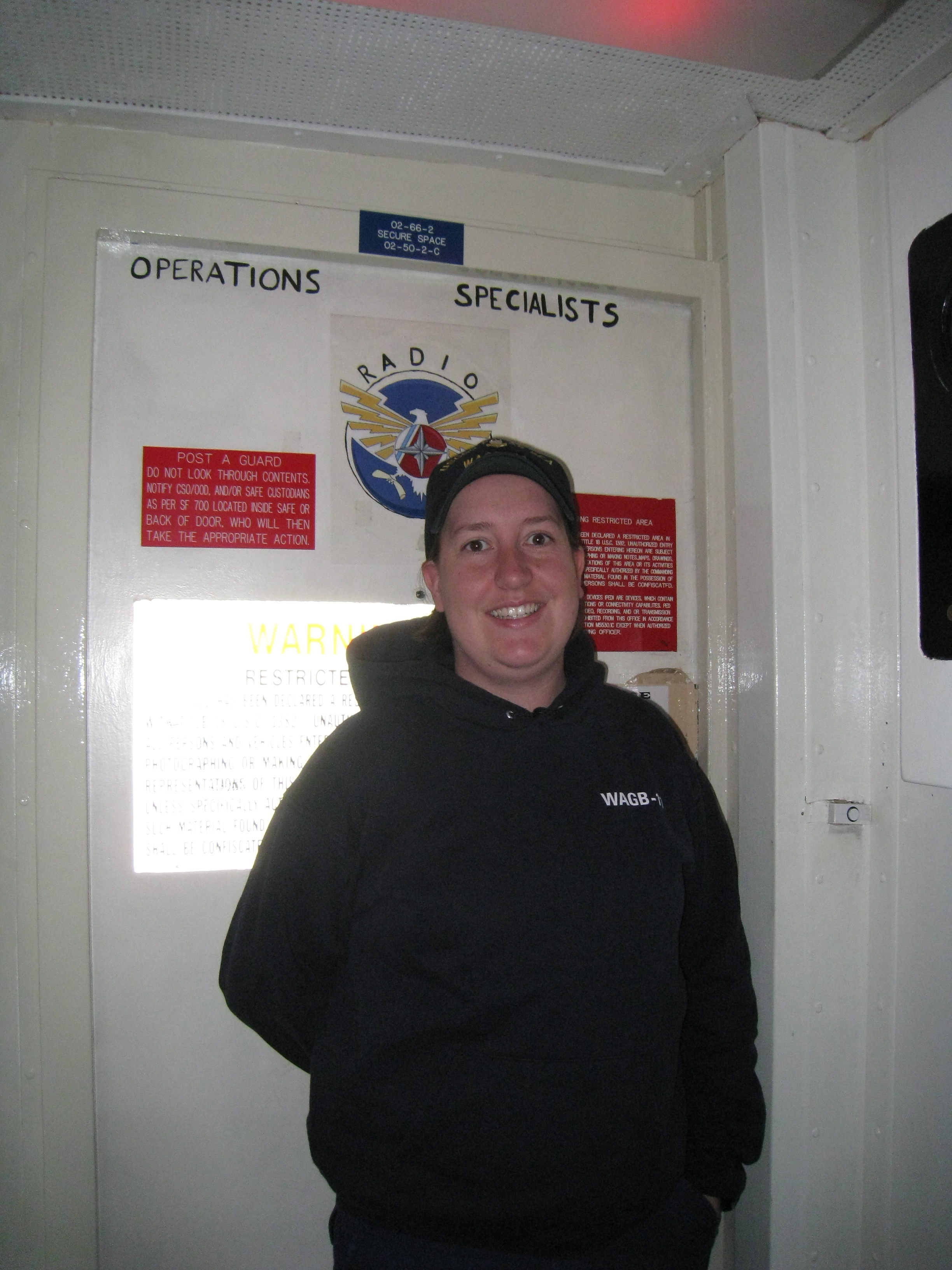 Operations specialist Kim Myers works her six hour shift keeping watch over all secure communications. Aboard the USCGC Polar Sea icebreaker in the Beaufort Sea.
