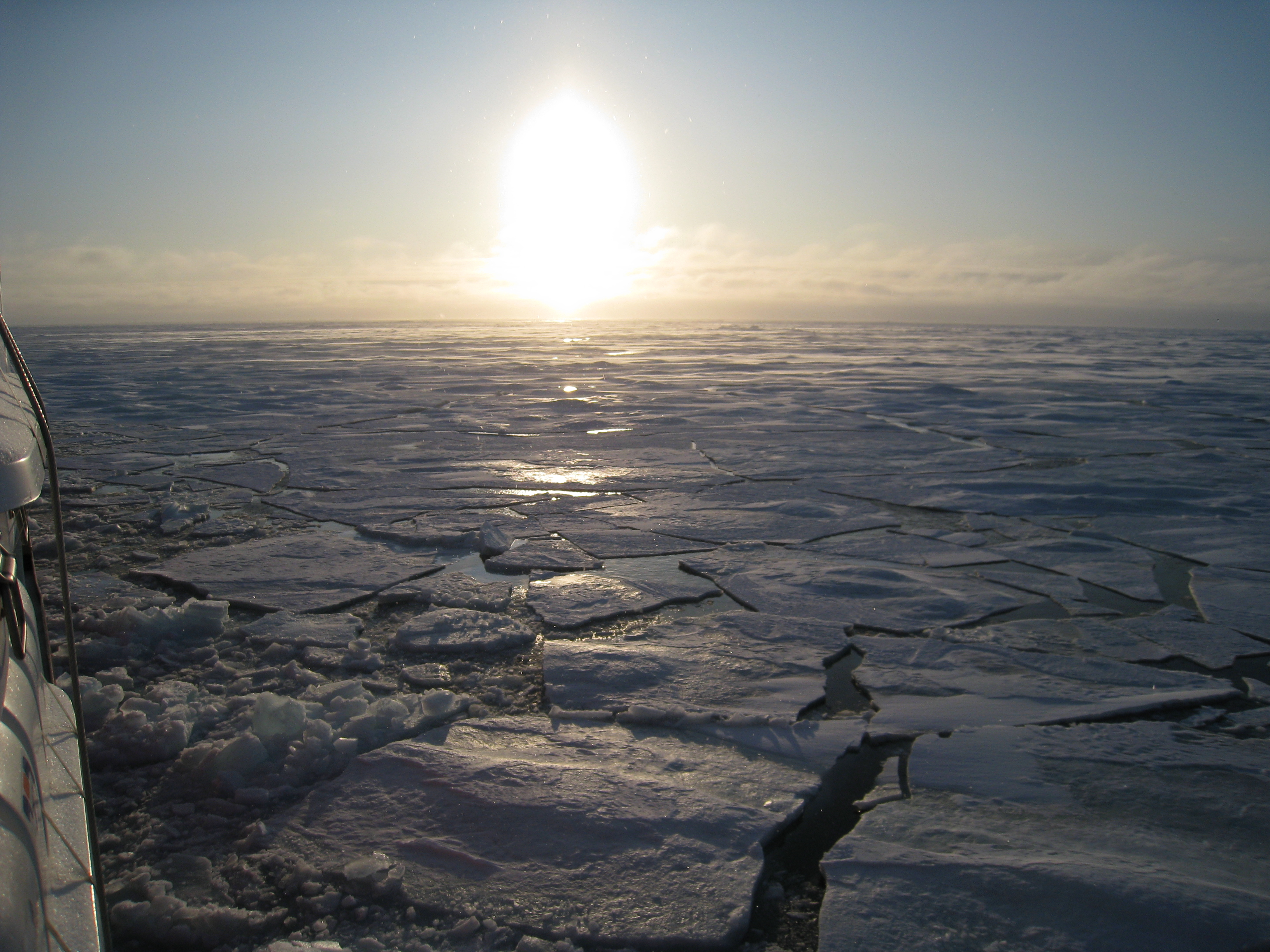 Sun bounces off of the sea ice on a clear sunny day in the Arctic. Aboard the USCGC Polar Sea icebreaker in the Beaufort Sea.