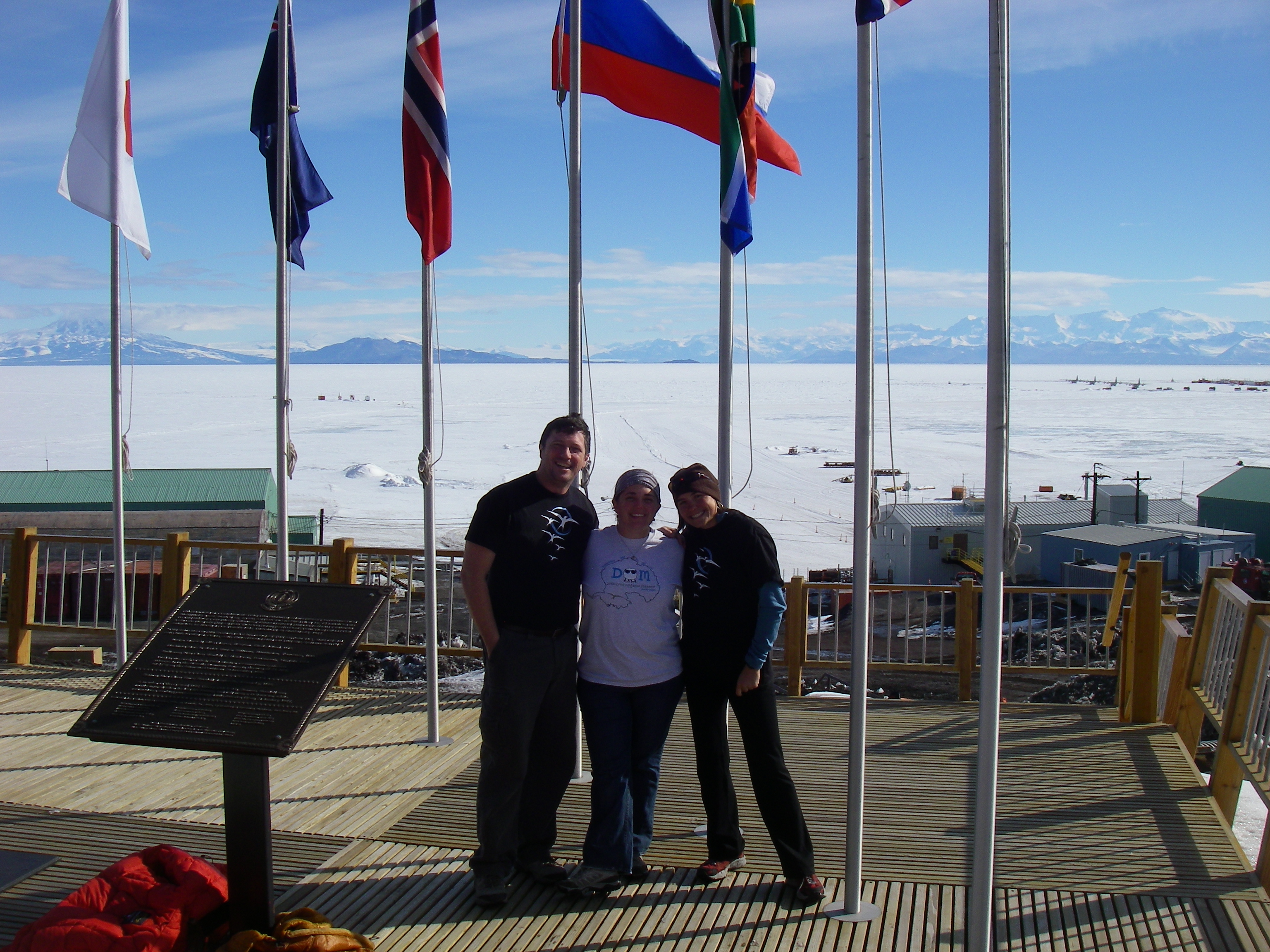 Heidi Roop, Gary Wesche, and Sarah Diers cross paths at McMurdo Station, Antarctica.