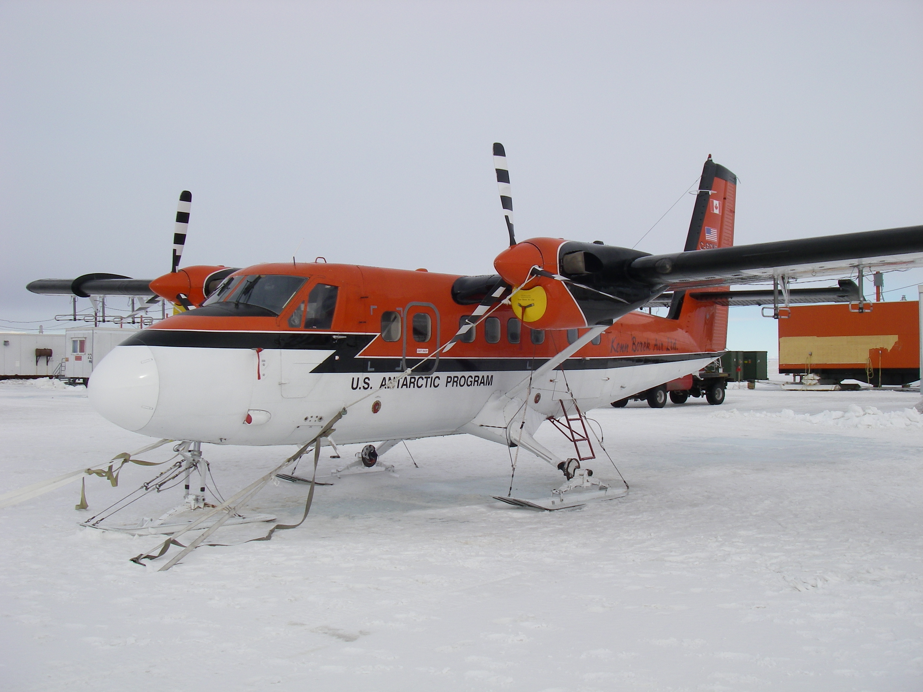 The CReSIS Twin Otter plane is outfitted and ready to go. On the Ice Runway near McMurdo Station, Antarctica.