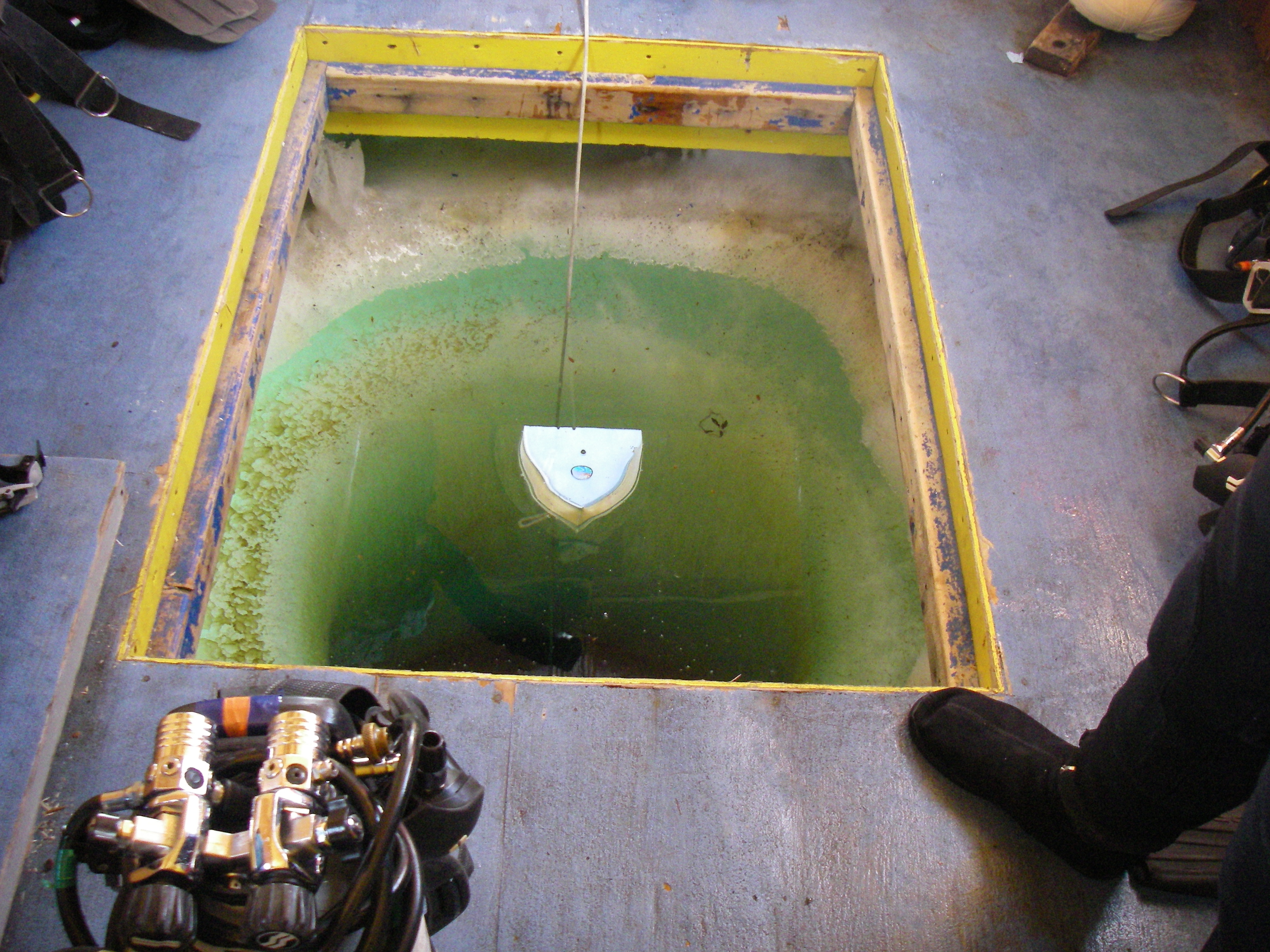 The dive hole through the sea ice to the under water world. In a hut near McMurdo Station, Antarctica.