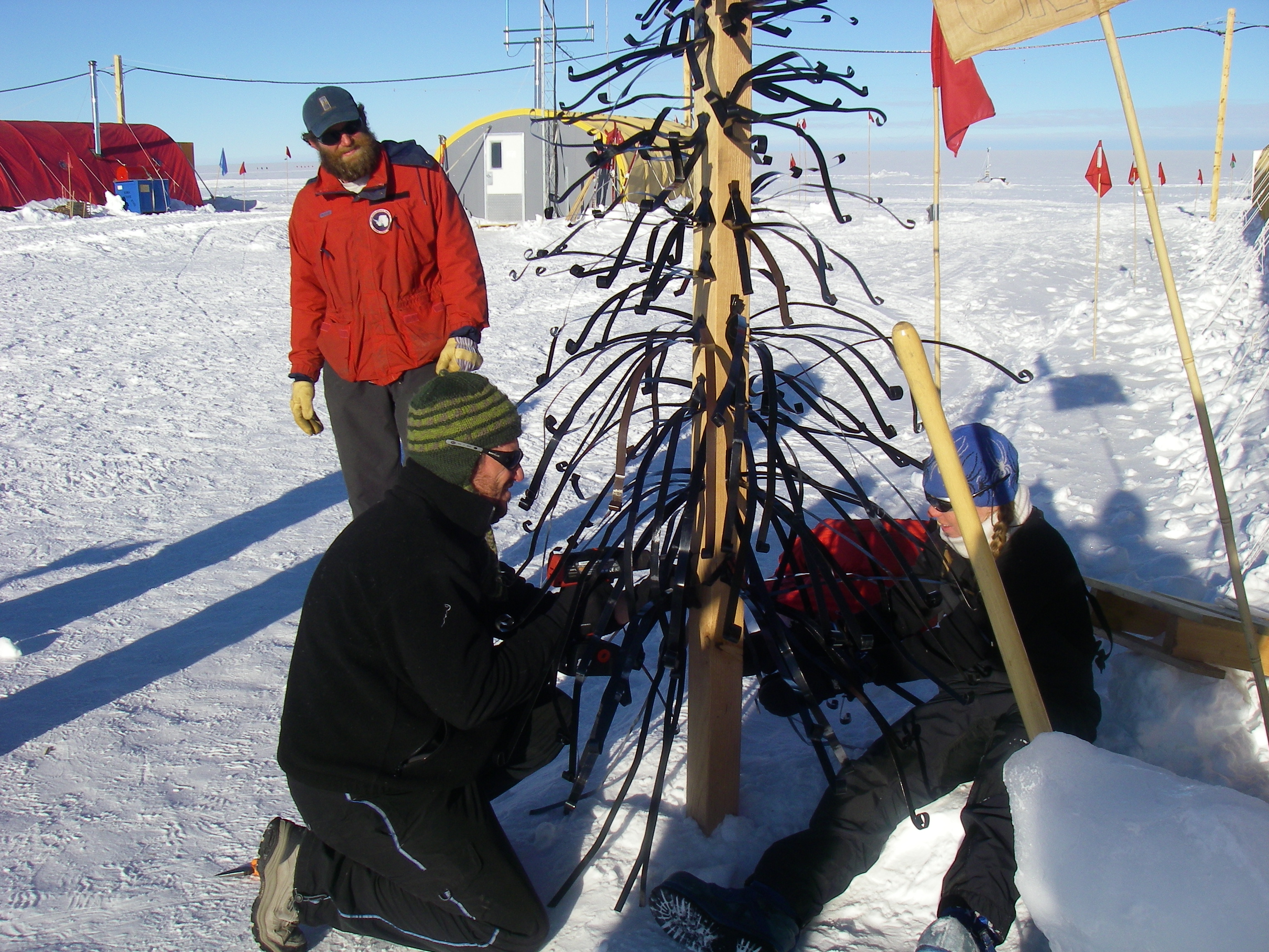 All of Byrd camp chips in with the tree. Byrd Surface Camp, Antarctica.