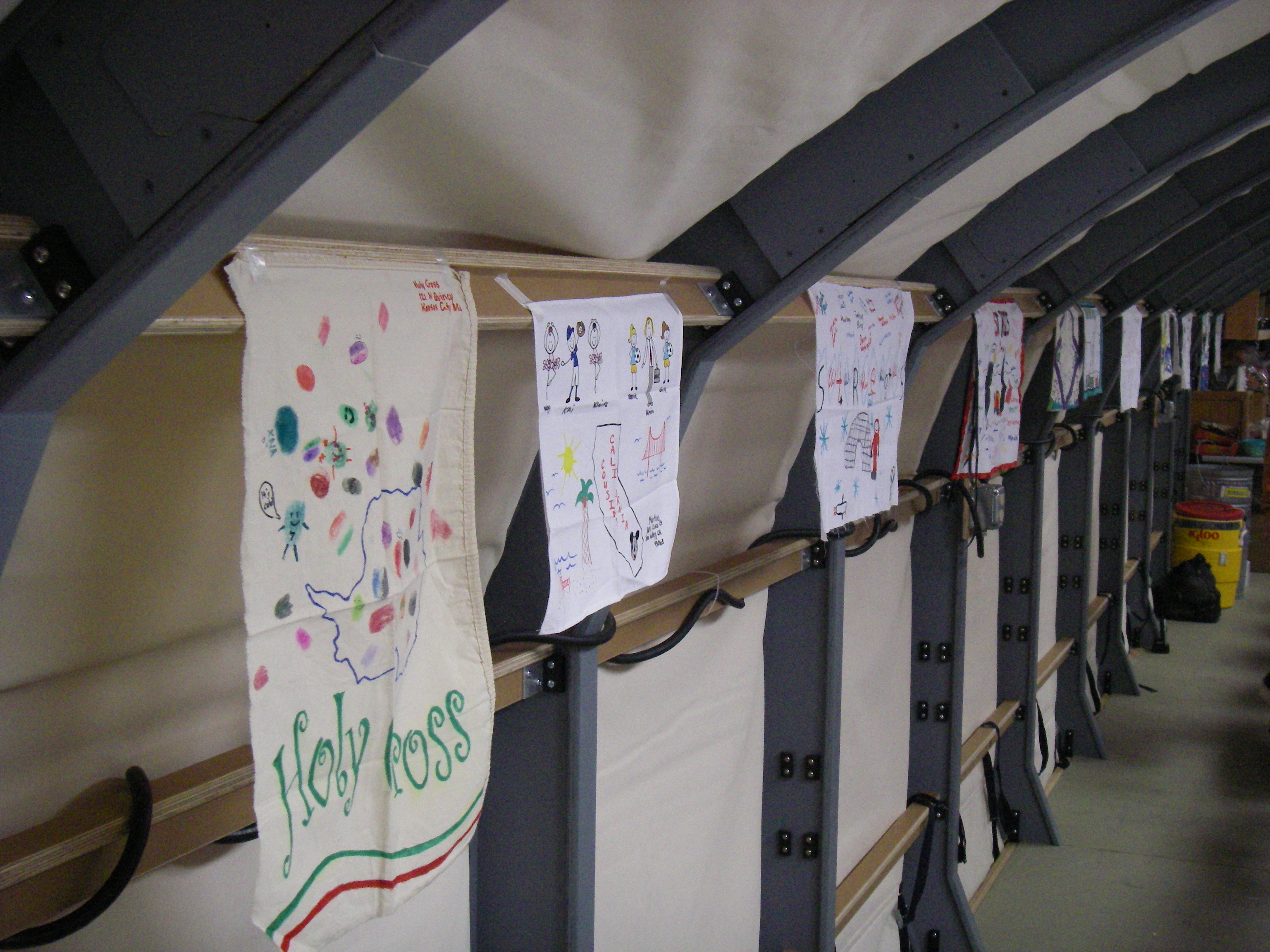 Flags provided by students from around the United States decorate the galley at Byrd Surface Camp, Antarctica.