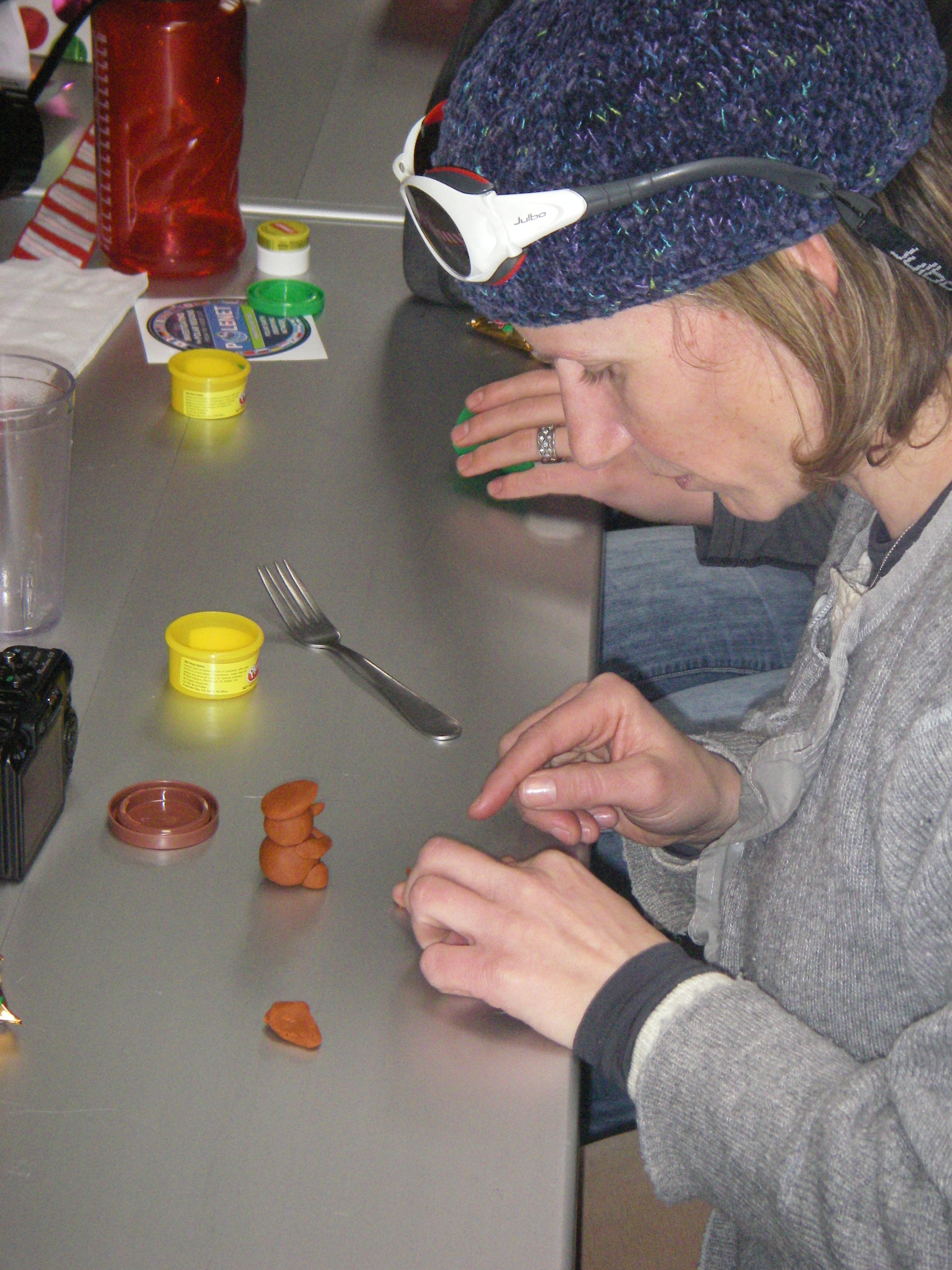 Monica Dauenhauer, pilot, shows her crafty side. Byrd Surface Camp, Antarctica.