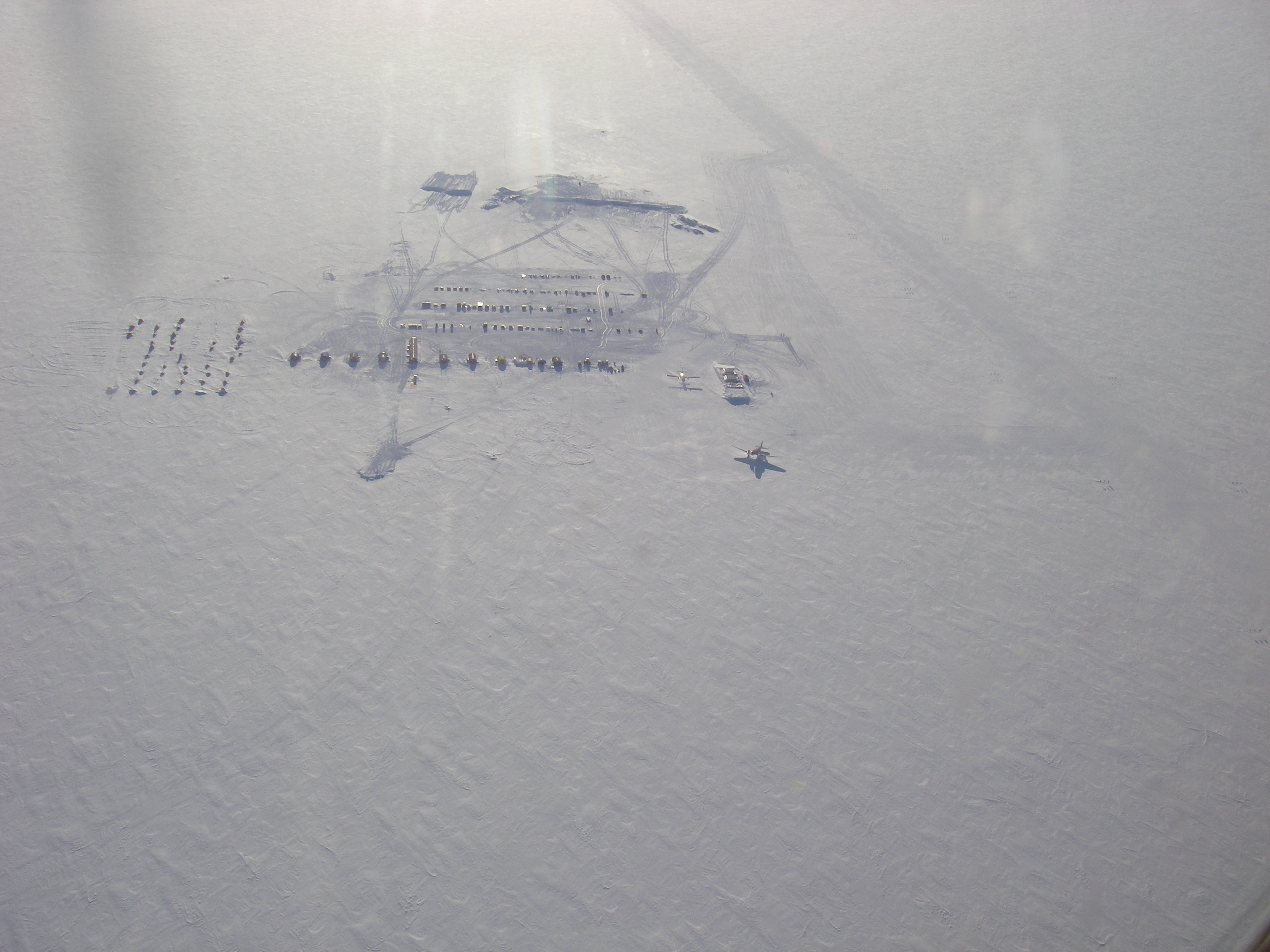 A view above Byrd Surface Camp, Antarctica from the airplane.