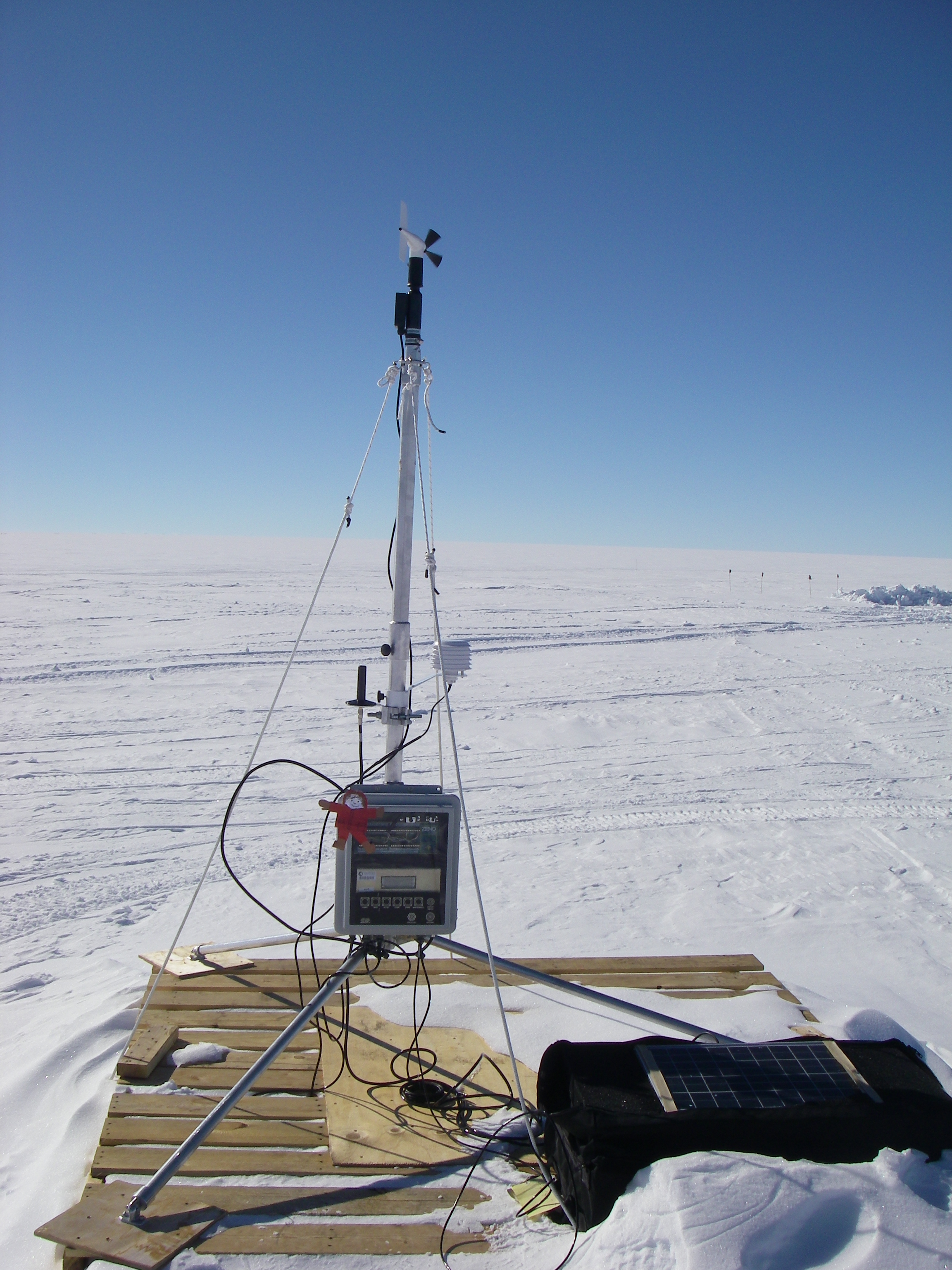Gary Wesche: "Flat Stanley helps read the data from the weather station at Byrd Surface Camp, Antarctica."