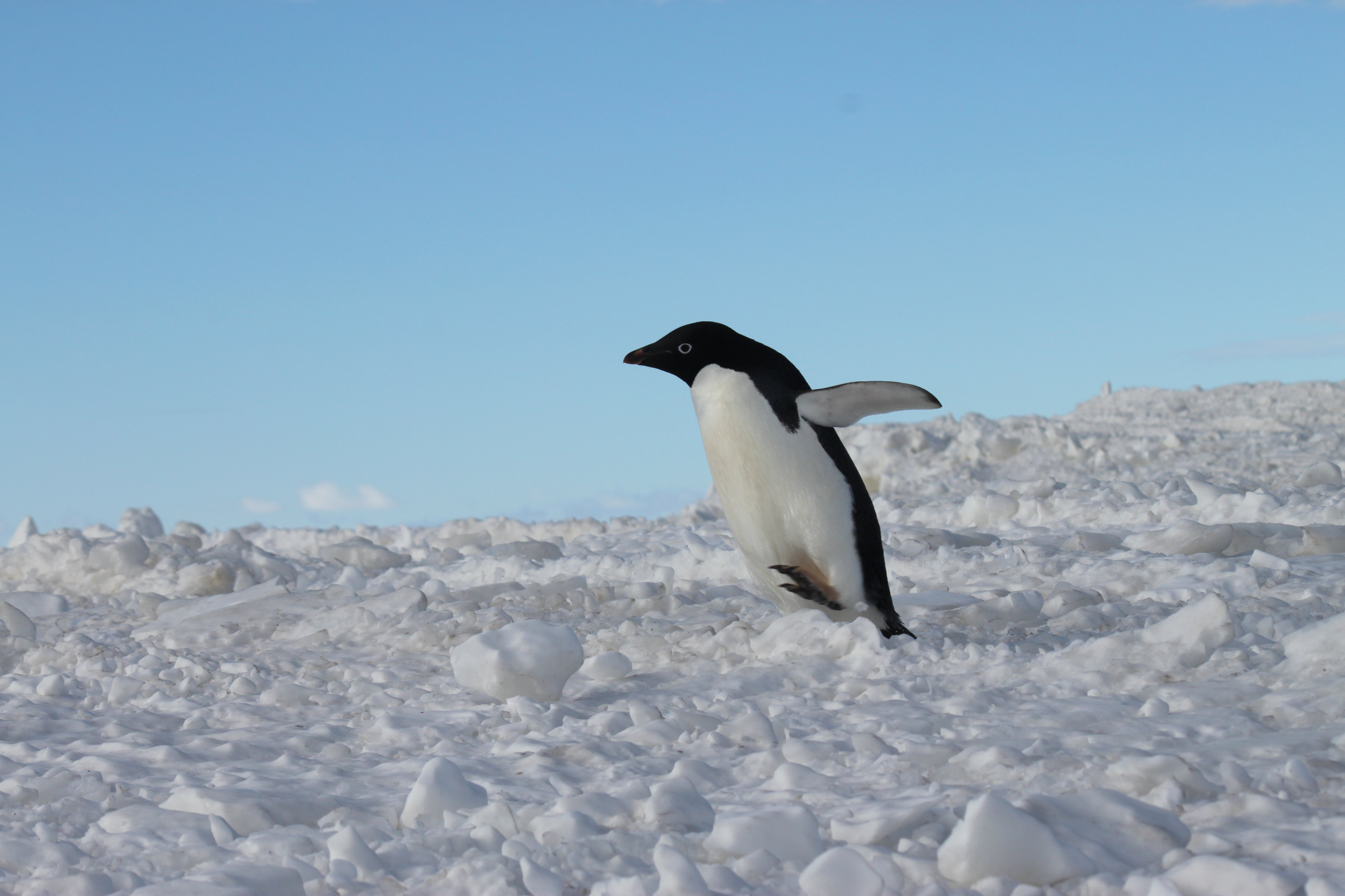 An Adélie penguin on the McMurdo Ice Runway at McMurdo Station, Antarctica.