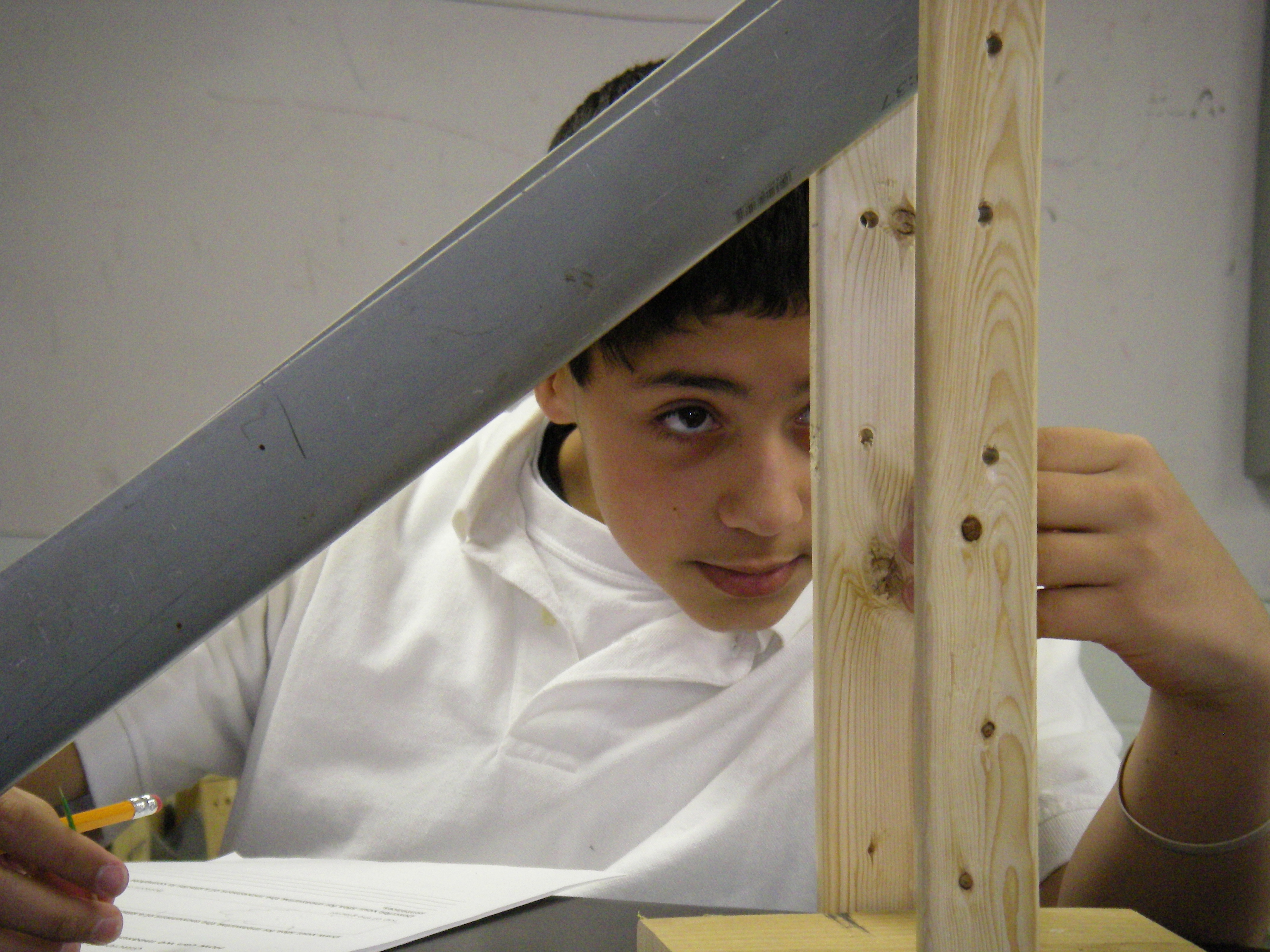 Dan, a student at St. Regis school, is focused in the science lab. St. Regis School in Kansas City, Missouri.