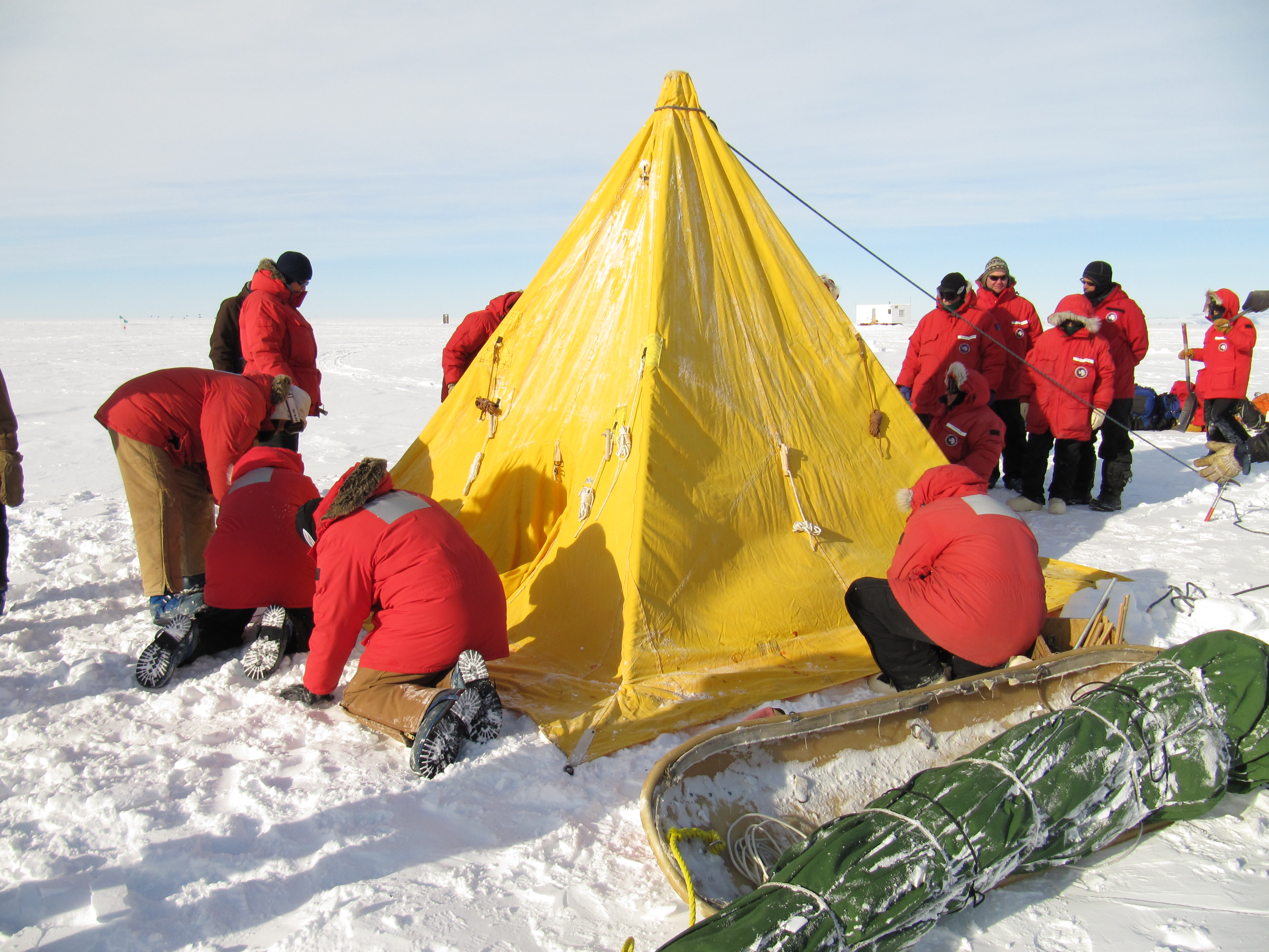 Lindsay Knippenberg: "A Scott tent is a double-walled pyramid shaped tent." At the Happy Camper School, near McMurdo Station, Antarctica.