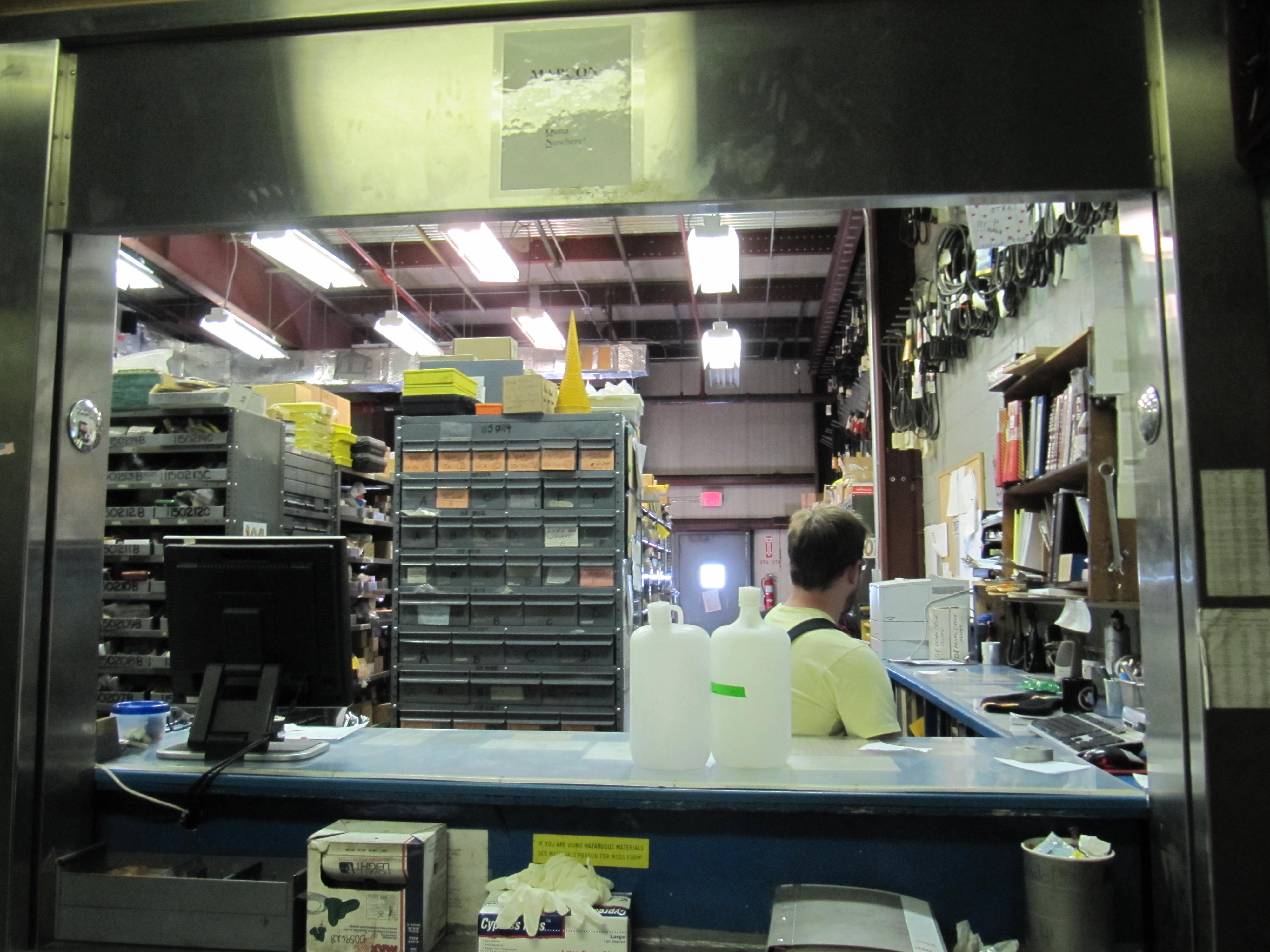 There are two separate windows where the engineers and mechanics can get tools and parts. At the the heavy machine shop in McMurdo Station, Antarctica.