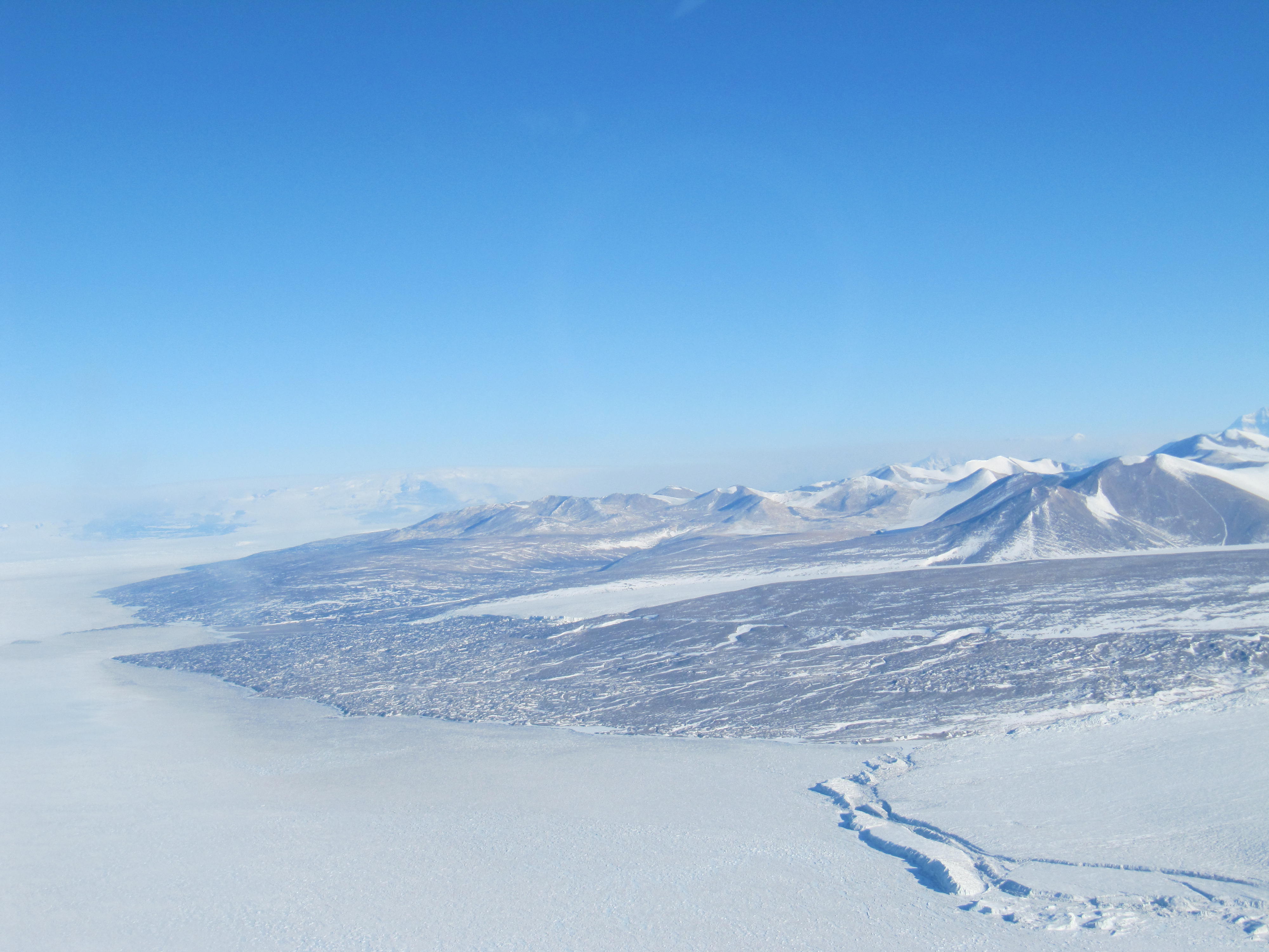 Lindsay Knippenberg: "McMurdo Station is on an island (Ross Island) in the Ross Sea, so technically I haven't stepped foot on the Antarctic Continent yet, but this is where it begins and I will soon take my first steps on Antarctica." McMurdo Dry Valleys, Antarctica.