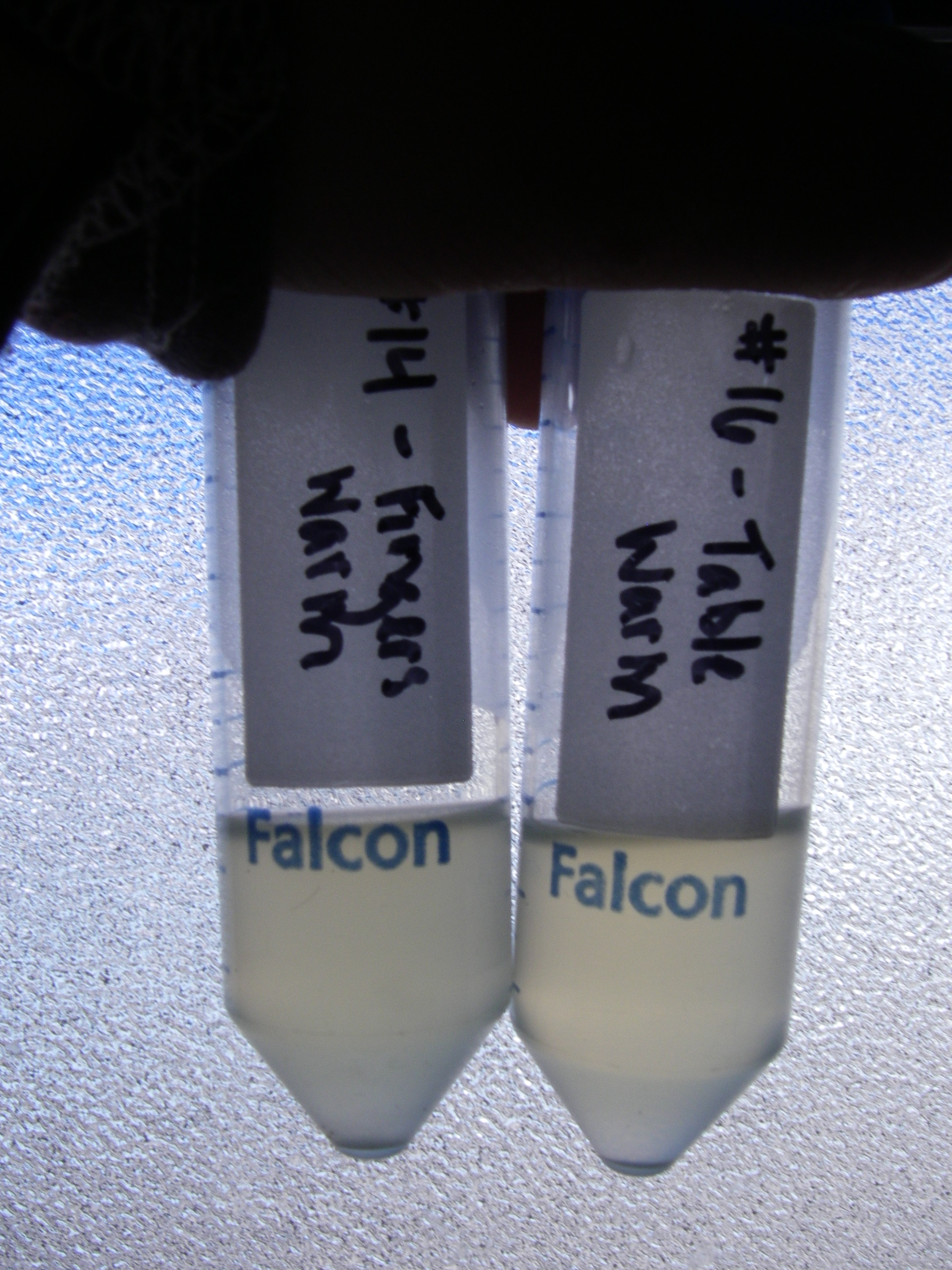 Lindsay Knippenberg: "At the end of Day 2, we have two tubes with microorganism growth. We have the table swab from the warm environment that we saw microorganisms in yesterday and now the swab of my fingers in the warm environment is growing too. None of the cold environment tubes have grown anything yet." McMurdo Dry Valleys, Antarctica.