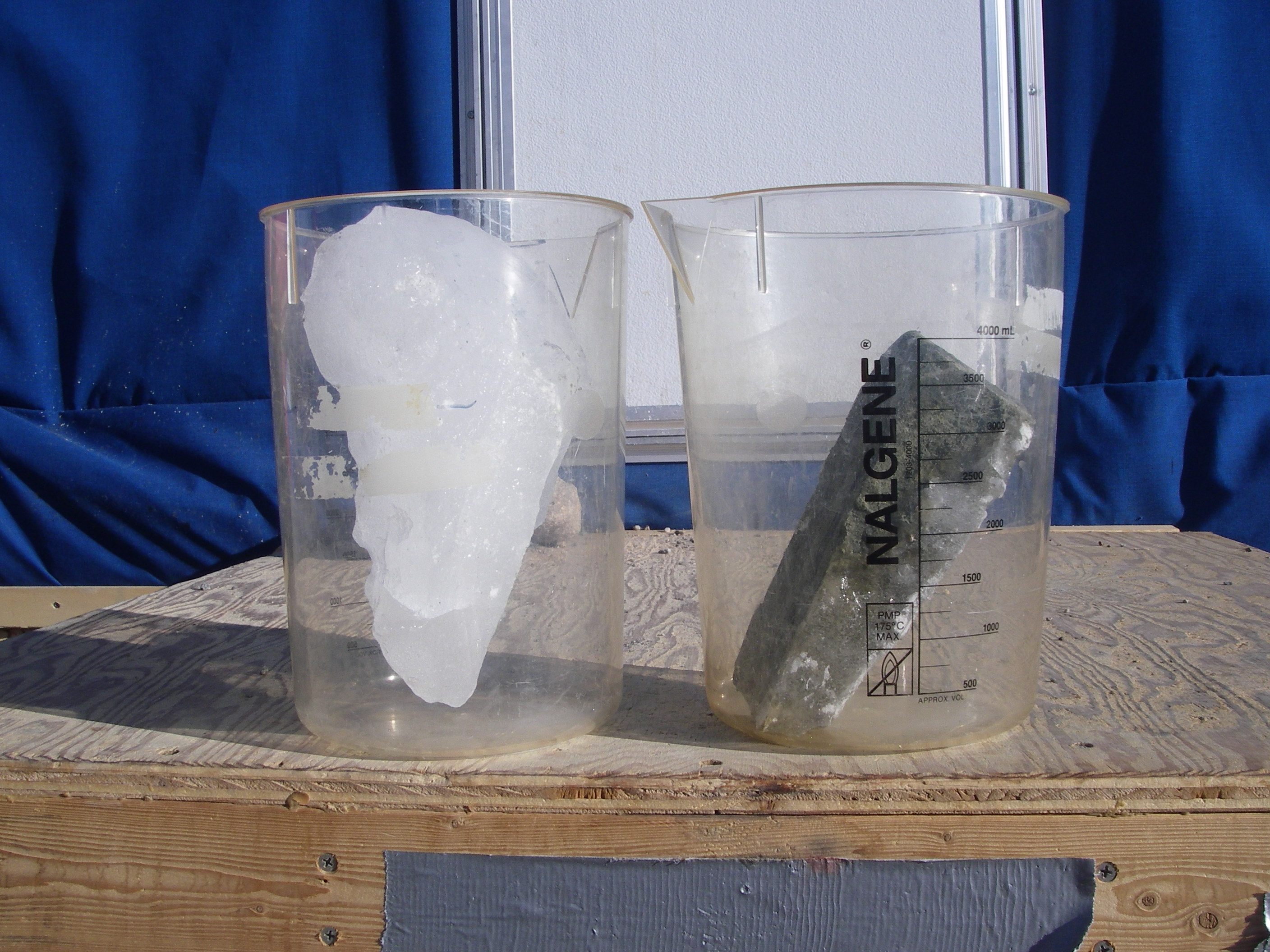 To see if there is salt in a glacier the team collected both dirty ice (right) and clean ice (left) from the Taylor Glacier. McMurdo Dry Valleys, Antarctica.