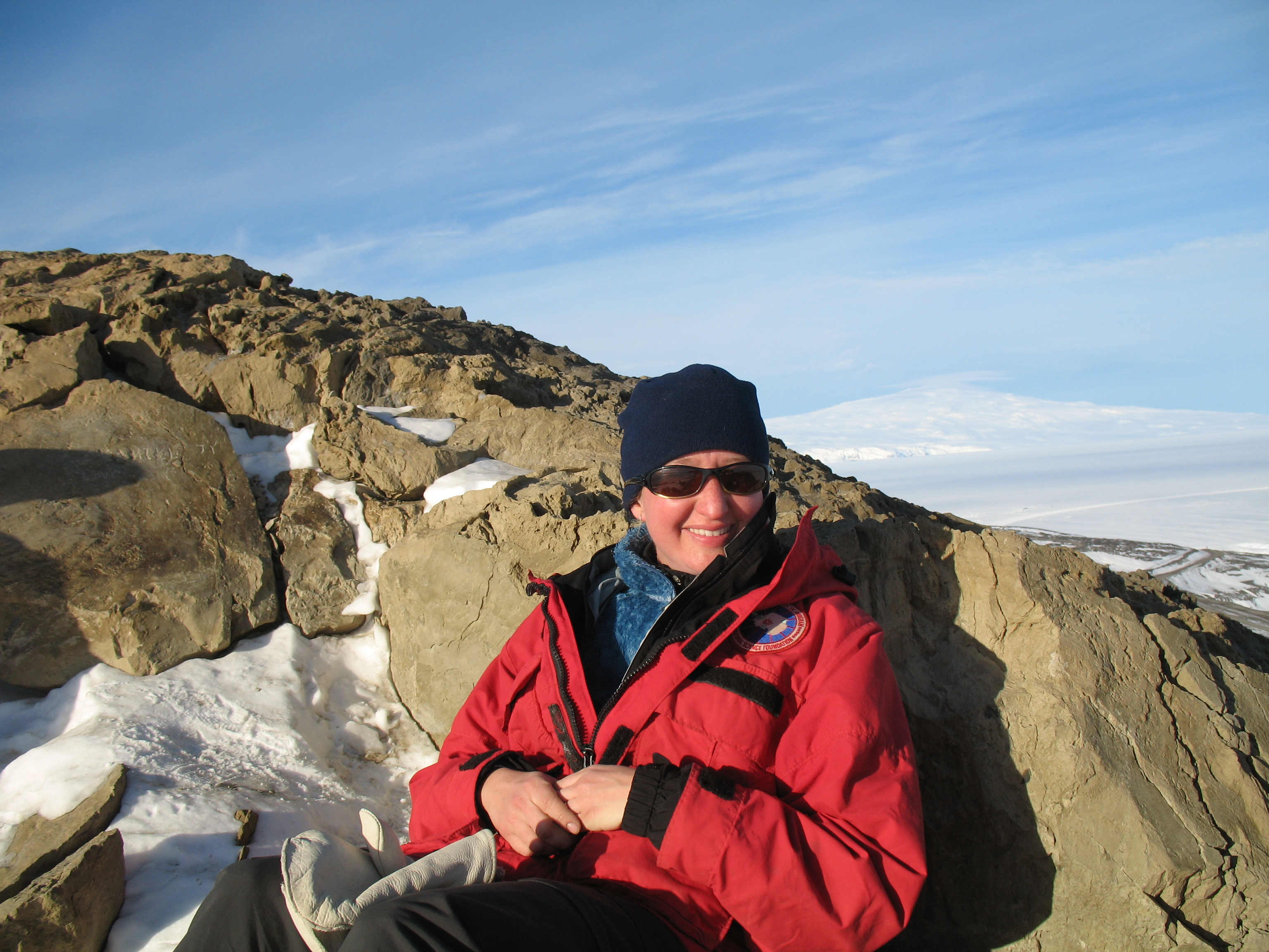 Lindsay Knippenberg: "When we got to the top of Observation Hill we took some time to take in the views and then I had to hide behind a rock because it was so windy." McMurdo Station, Antarctica.