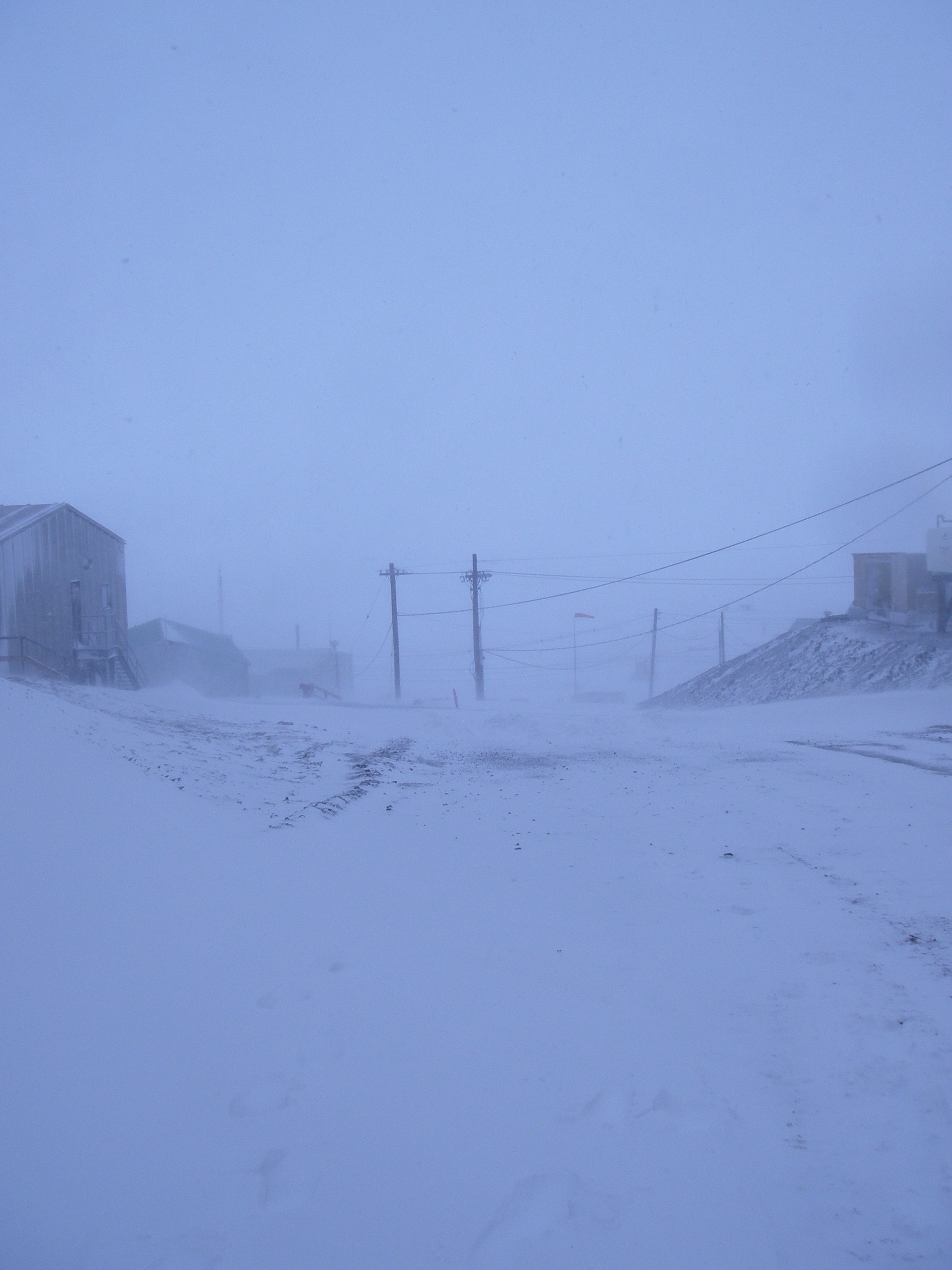 Lindsay Knippenberg: "Usually when you look down the street you can see the ice covered sound and the mountains in the distance. Today all you can see is white everywhere that you look." McMurdo Station, Antarctica.