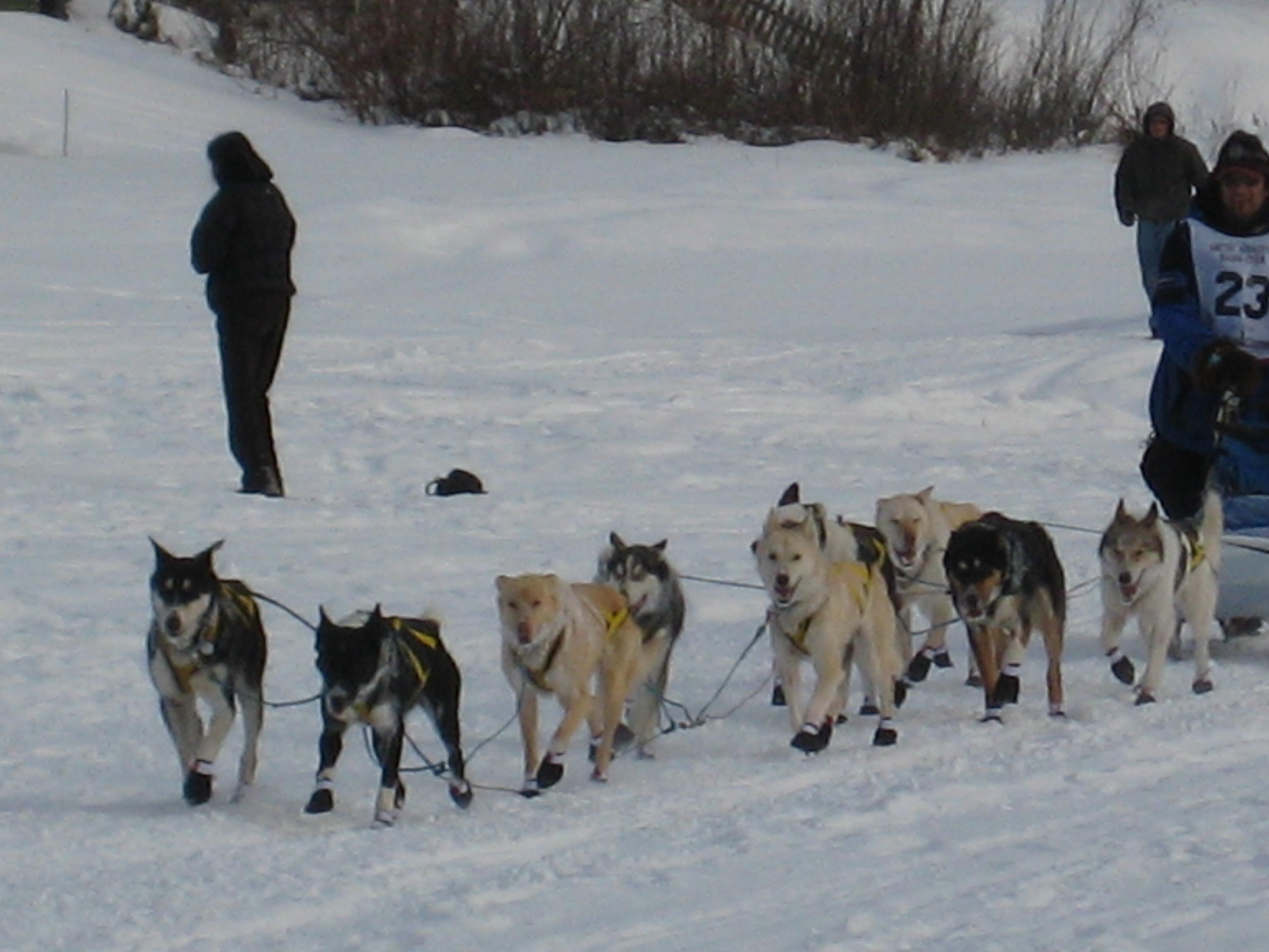 After ten days of racing, the first two teams cross the finish line just four minutes apart!. At the Yukon Quest finish line in Fairbanks, Alaska.