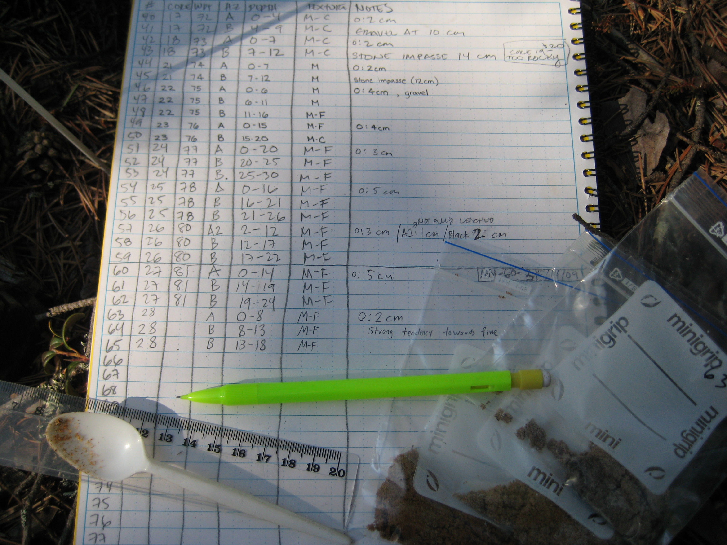 A notebook with soil sample data. At the excavation site near Yli-Ii, Finland.