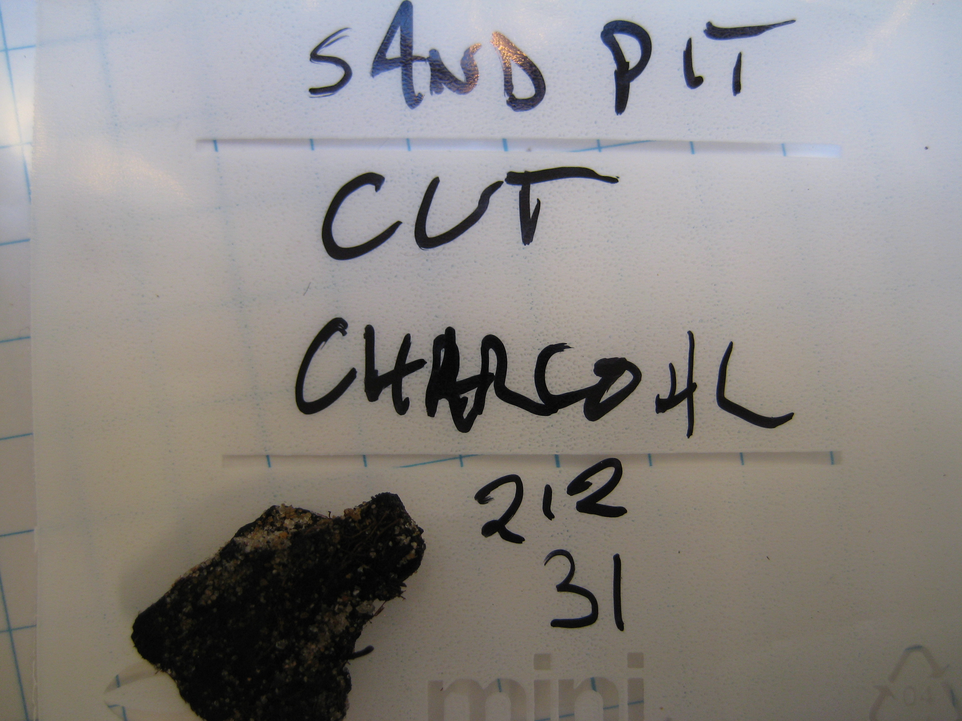 Cut charcoal from the sand pit. In the archaeology laboratory at Oulu University in Oulu, Finland.