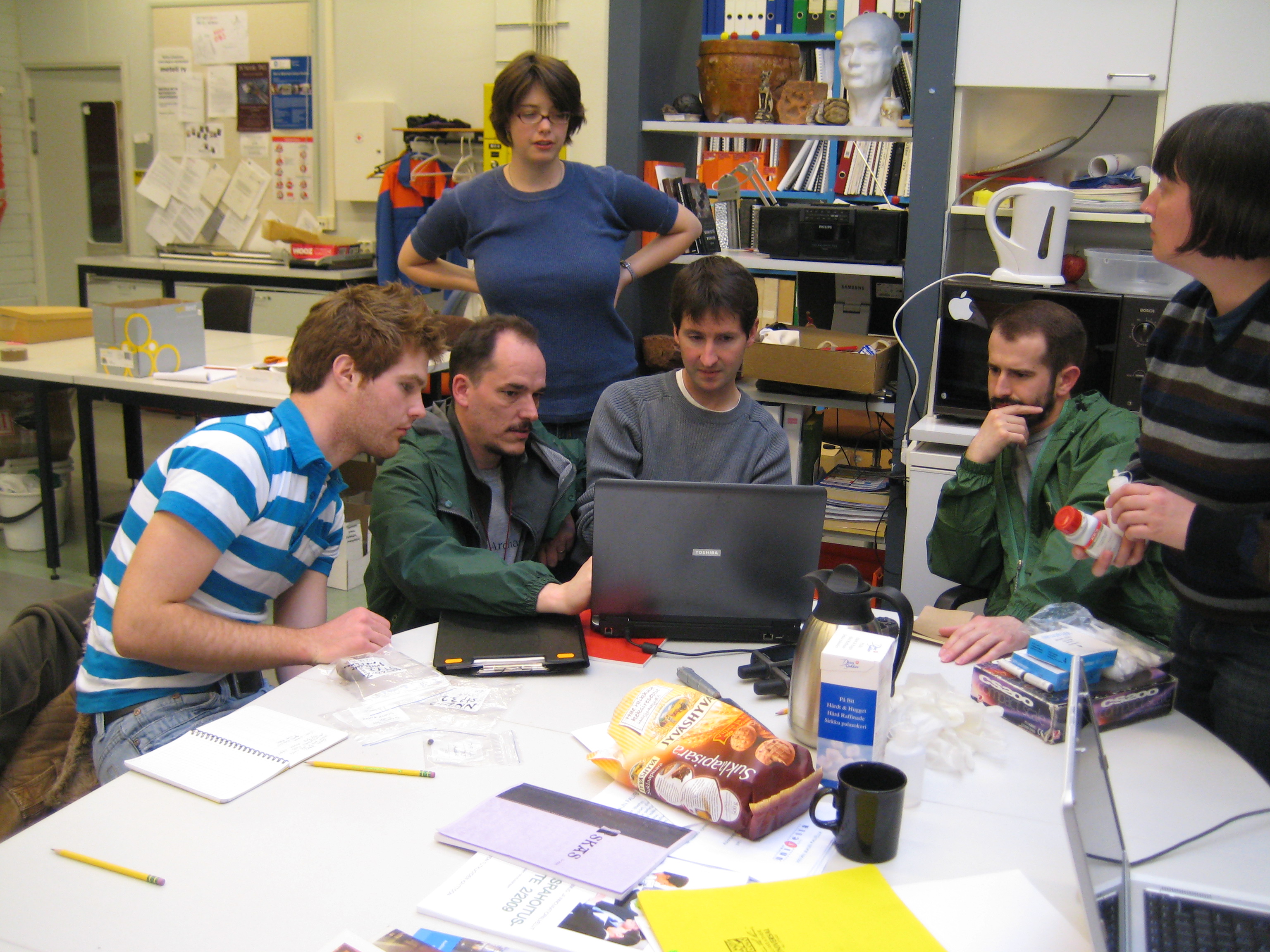 Some team members in the archaeology laboratory at Oulu University in Oulu, Finland.